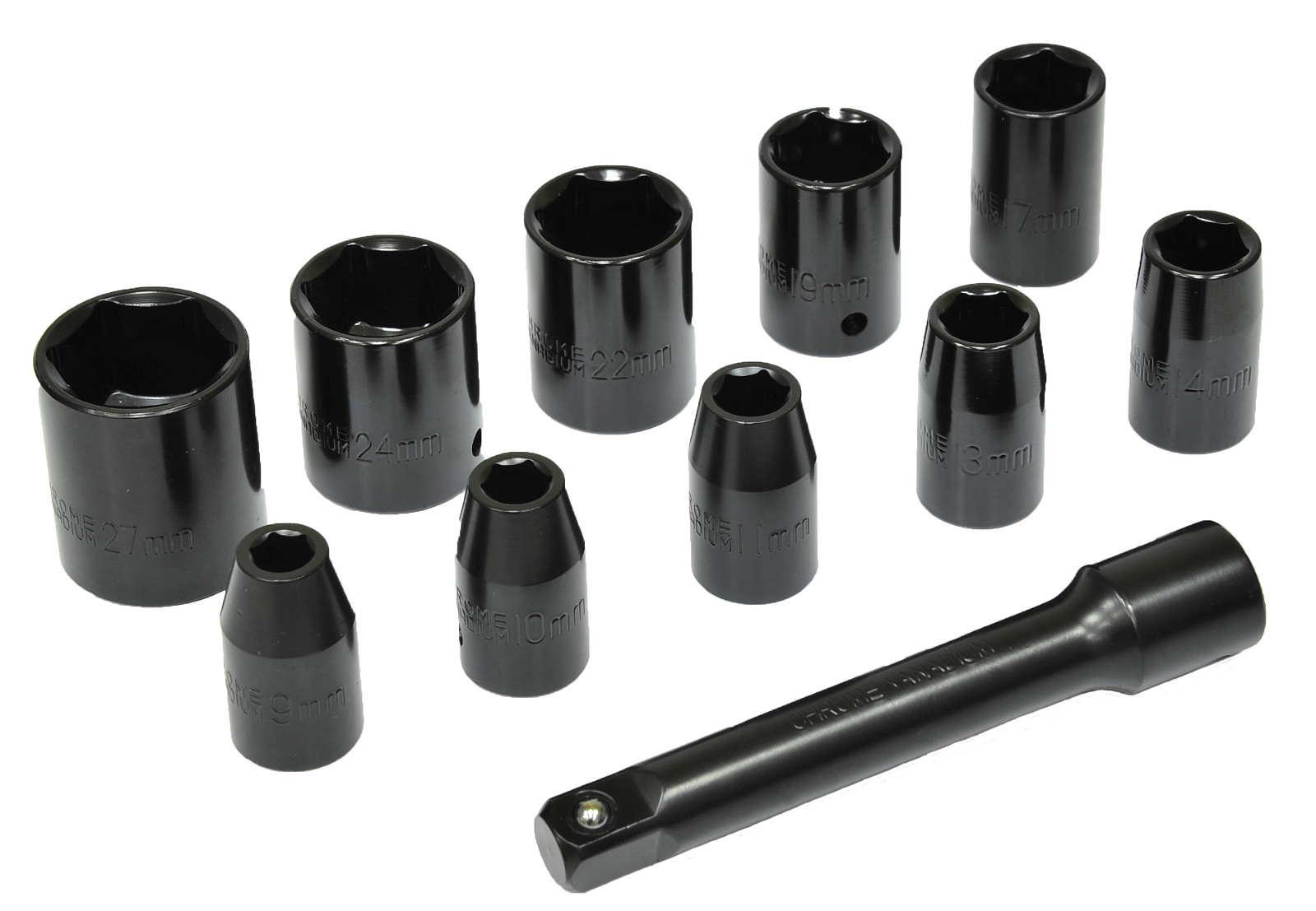 Размеры головок: 9,10,11,13,14,17,19,22,24,27 мм