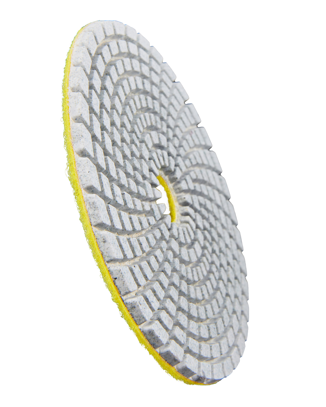 Алмазный гибкий круг диаметром 125 мм и зернистостью Р100 применяется для мокрого шлифования гранита, керамогранита и мрамора.