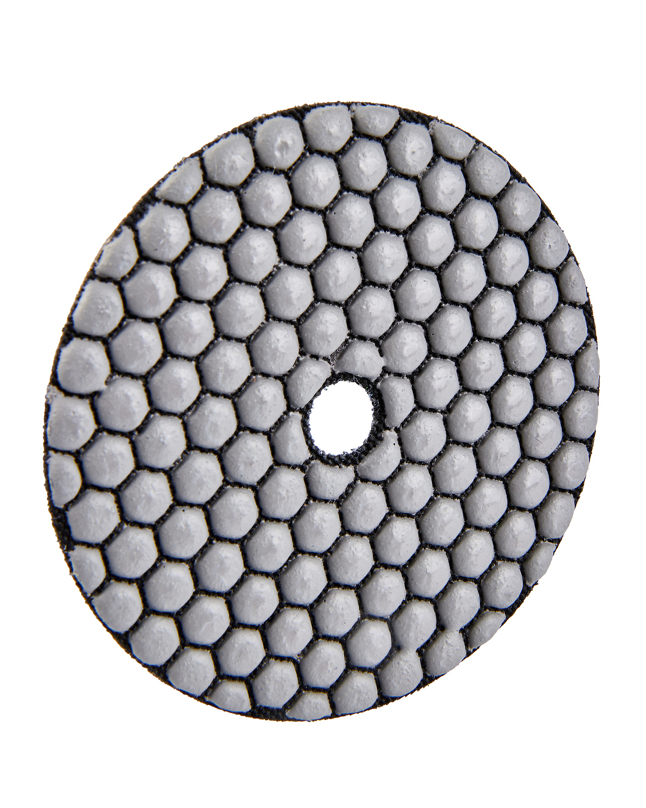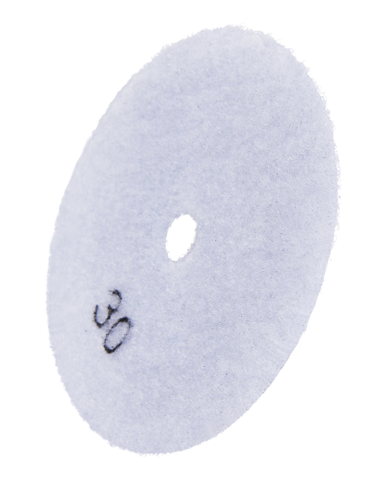 Алмазный гибкий круг диаметром 100 мм и зернистостью Р30 применяется для сухого шлифования гранита, керамогранита и мрамора.