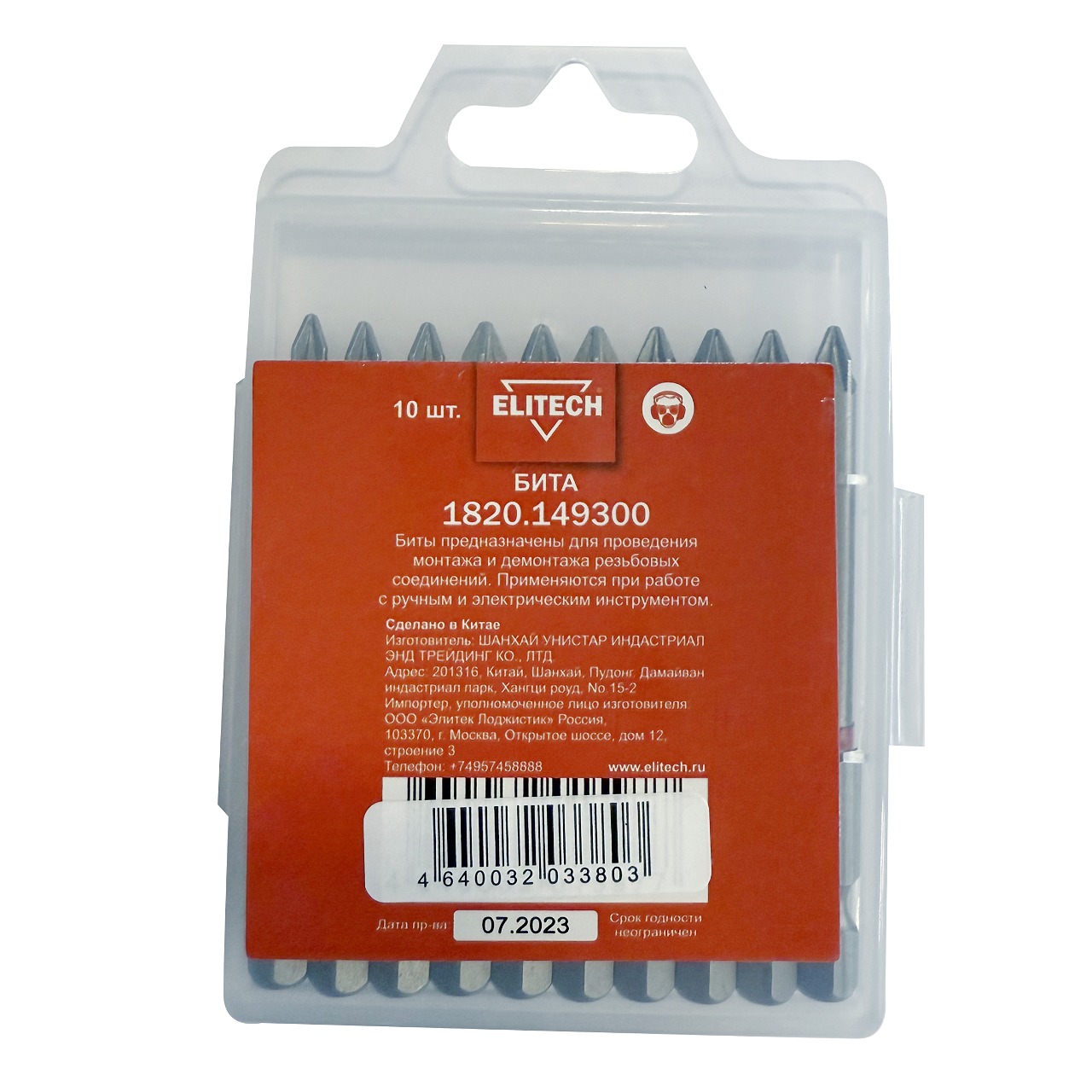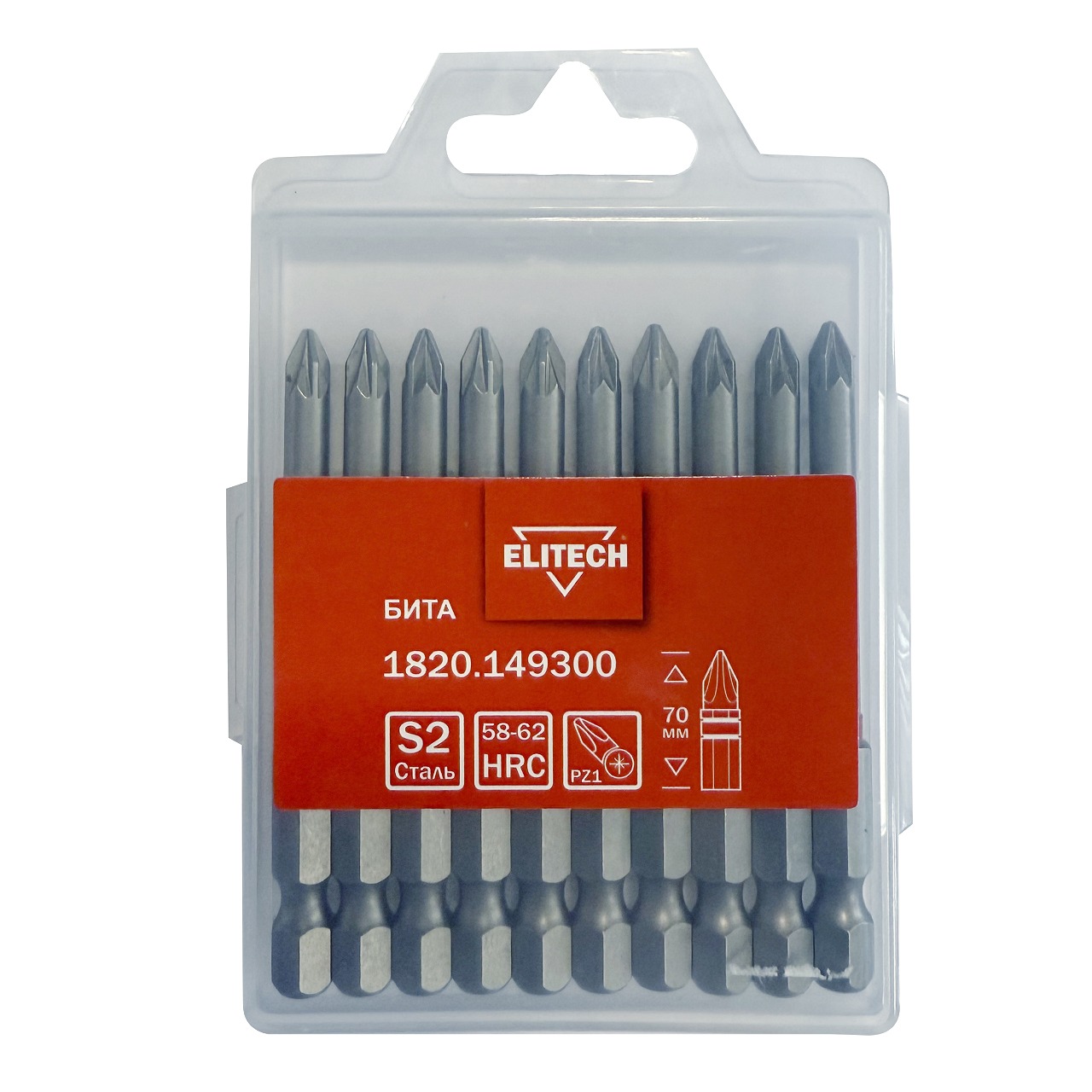 Набор магнитных бит ELITECH 215238, PZ1, 1/4 (Тип Е), 70 мм, 10 шт.