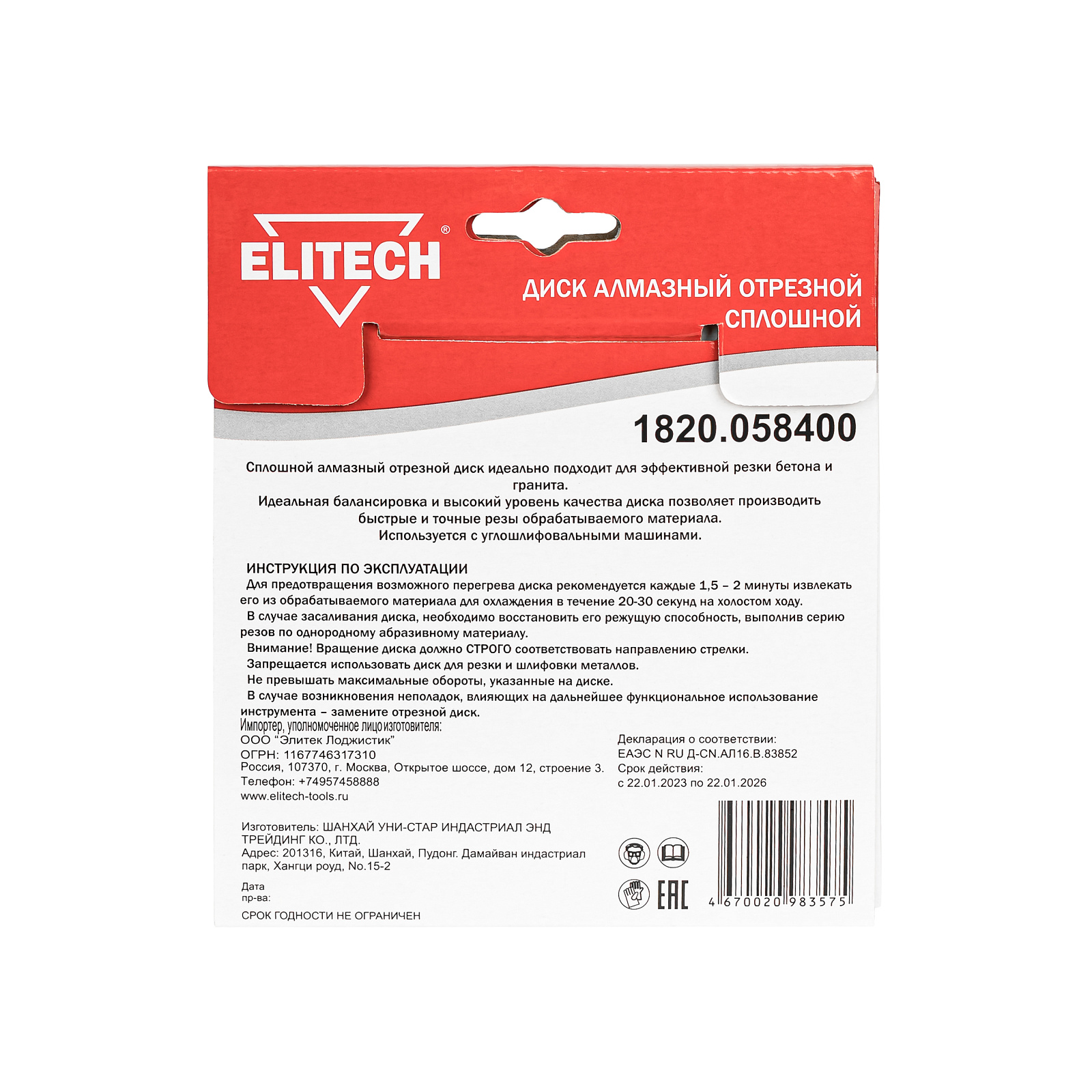 Алмазный отрезной сплошной диск предназначен для быстрой (турбо) резки бетона и гранита (камня) с помощью углошлифовальных машин.