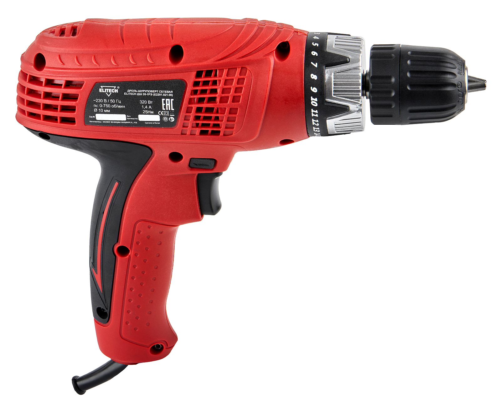 Дрель-шуруповерт мощностью 320 Вт, максимальным крутящим моментом 25 Нм и быстрозажимным патроном, предназначена для сверления отверстий в дереве, пластике, металле и других производных материалах. Завинчивания и отвинчивания шурупов и саморезов, разного диаметра и материала с разным крутящим моментом.