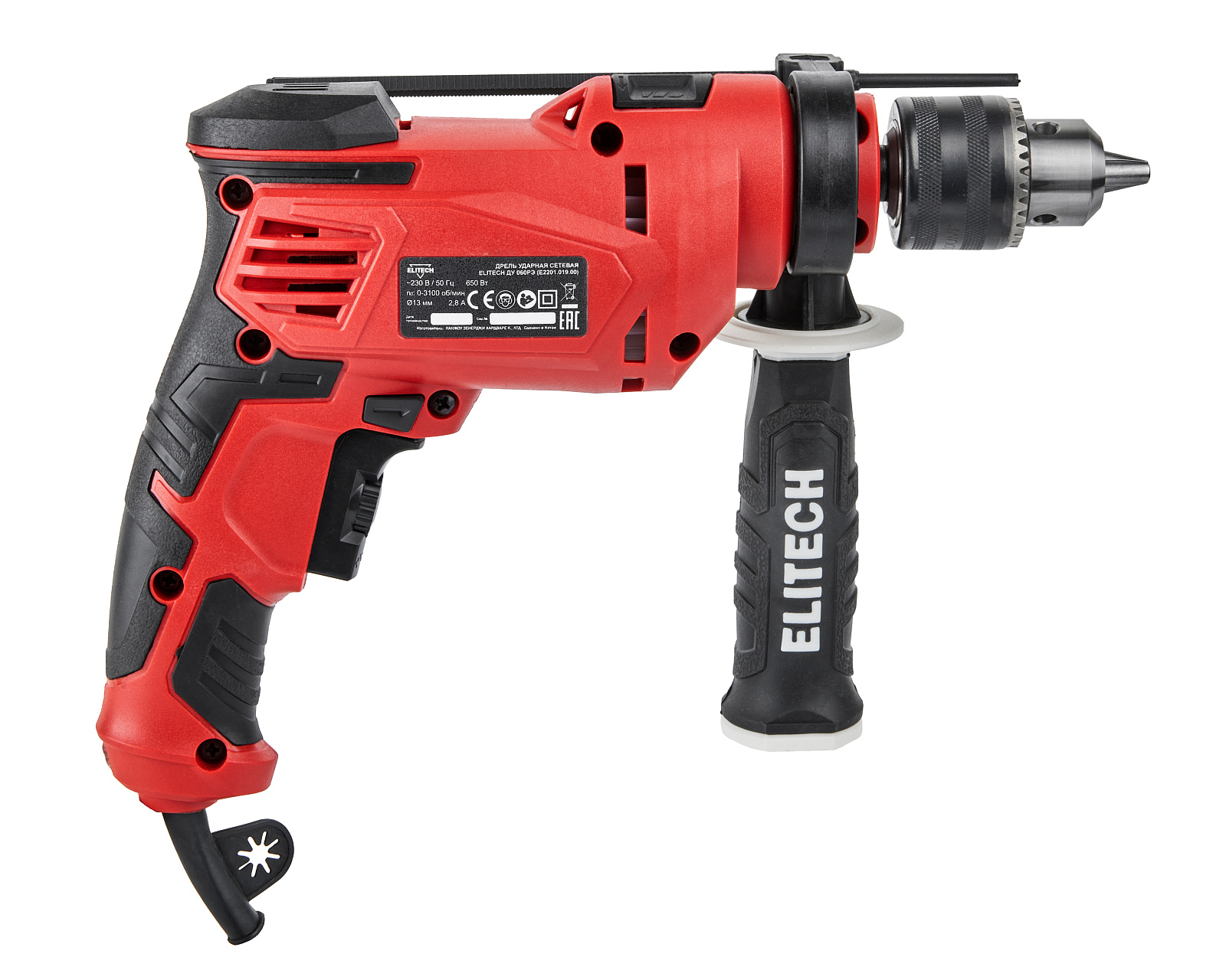 Дрель ударная ELITECH ДУ 060РЭ мощностью 650 Вт имеет два режима работы - сверление и сверление с ударом. Режим обычного сверления предназначен для работы с деревом и материалов на его основе, металлом, пластмассой, гипсокартоном, керамикой и другими аналогичными материалами. Режим сверления с ударом предназначен для работы с кирпичом и аналогичными легкими минеральными строительными материалами. Для работы в этом режиме используется сверло с твердосплавной напайкой. Оба режима широко используются при проведении ремонтных и отделочных работ, а также обычной хозяйственной деятельности. Скорость вращения на холостом ходу регулируется в диапазоне 0-3100 об/мин. В режиме сверления с ударом производится 48000 ударов в минуту. Для крепления сверл используется надежный ключевой патрон (с диапазоном зажима 1,5-13 мм).