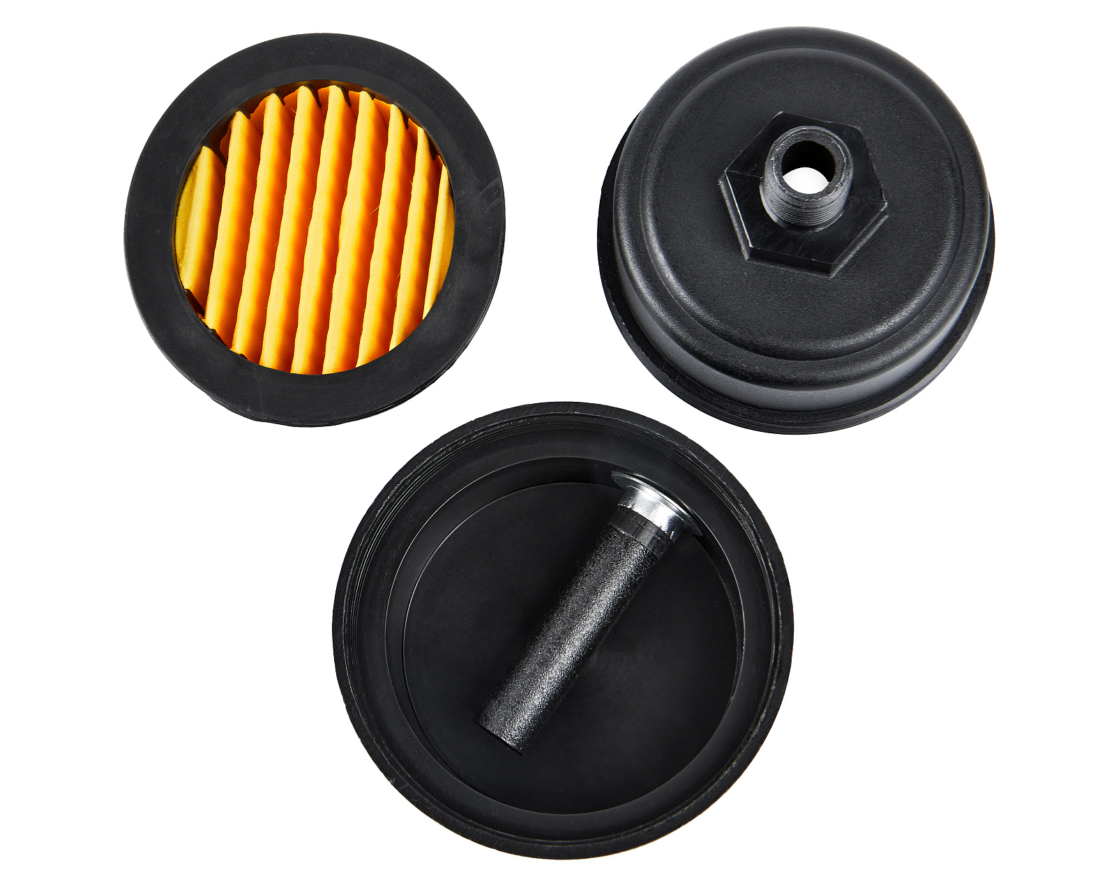 Фильтр воздушный ELITECH HD с бумажным фильтрующим элементом в пластиковом корпусе, предназначен для однофазных поршневых компрессоров с ресивером объемом 8 л, 24 л, 50 л, 120 л, с установочным резьбовым соединением 1/2' и служит для очистки от пыли и грязи поступающего в блок компрессора воздуха.