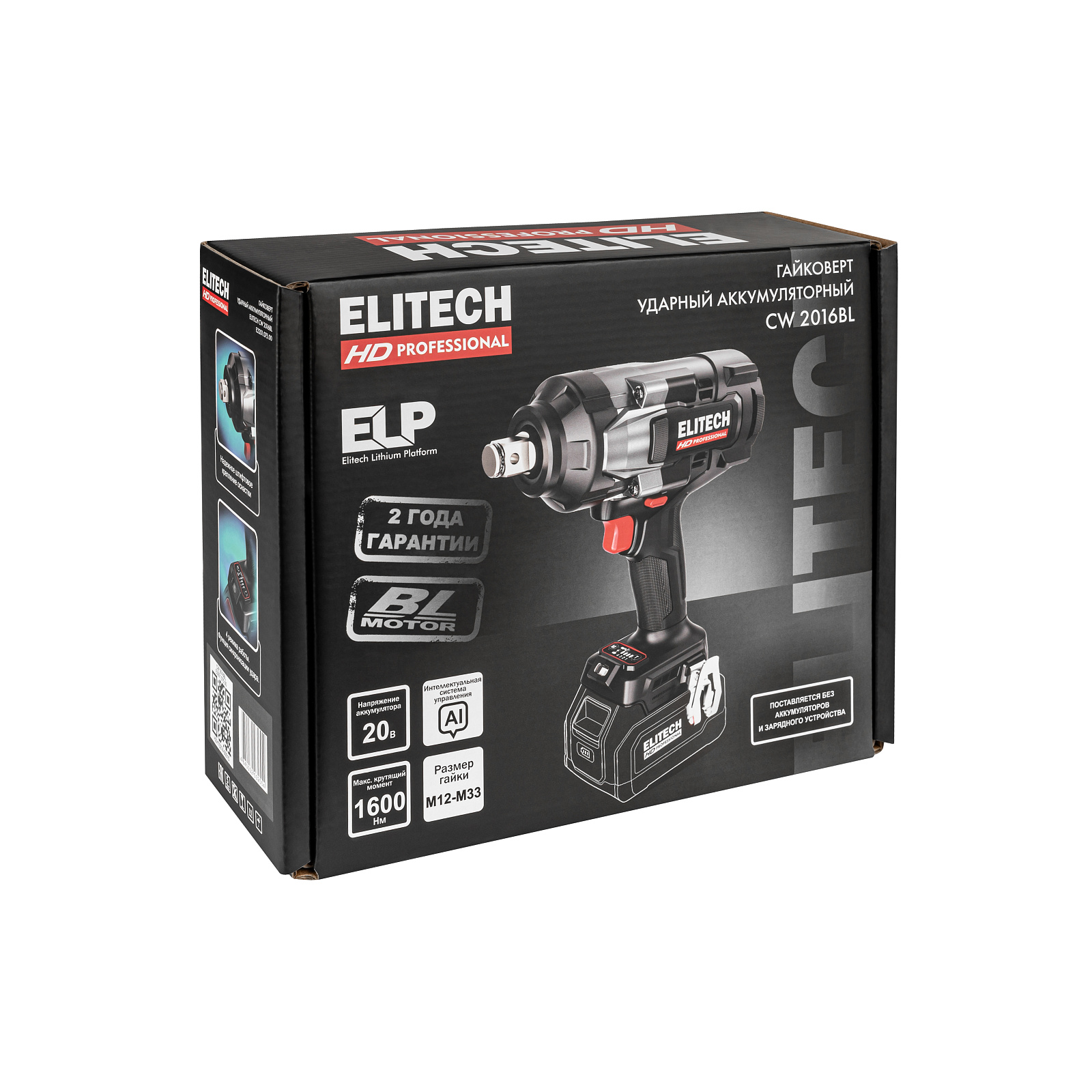 Гайковёрт ударный аккумуляторный ELITECH HD CW 2016BL с безщеточным электродвигателем напряжением 20 В, предназначен для работы с резьбовым крепежом (болты и гайки), закручивания и откручивания крепежных элементов при сборке или разборке металлических конструкций, снятии и установке колес автомобиля и т.д. Гайковёрт обеспечивает высокий крутящий момент при откручивании - до 2100 Нм, при минимальном усилии пользователя.