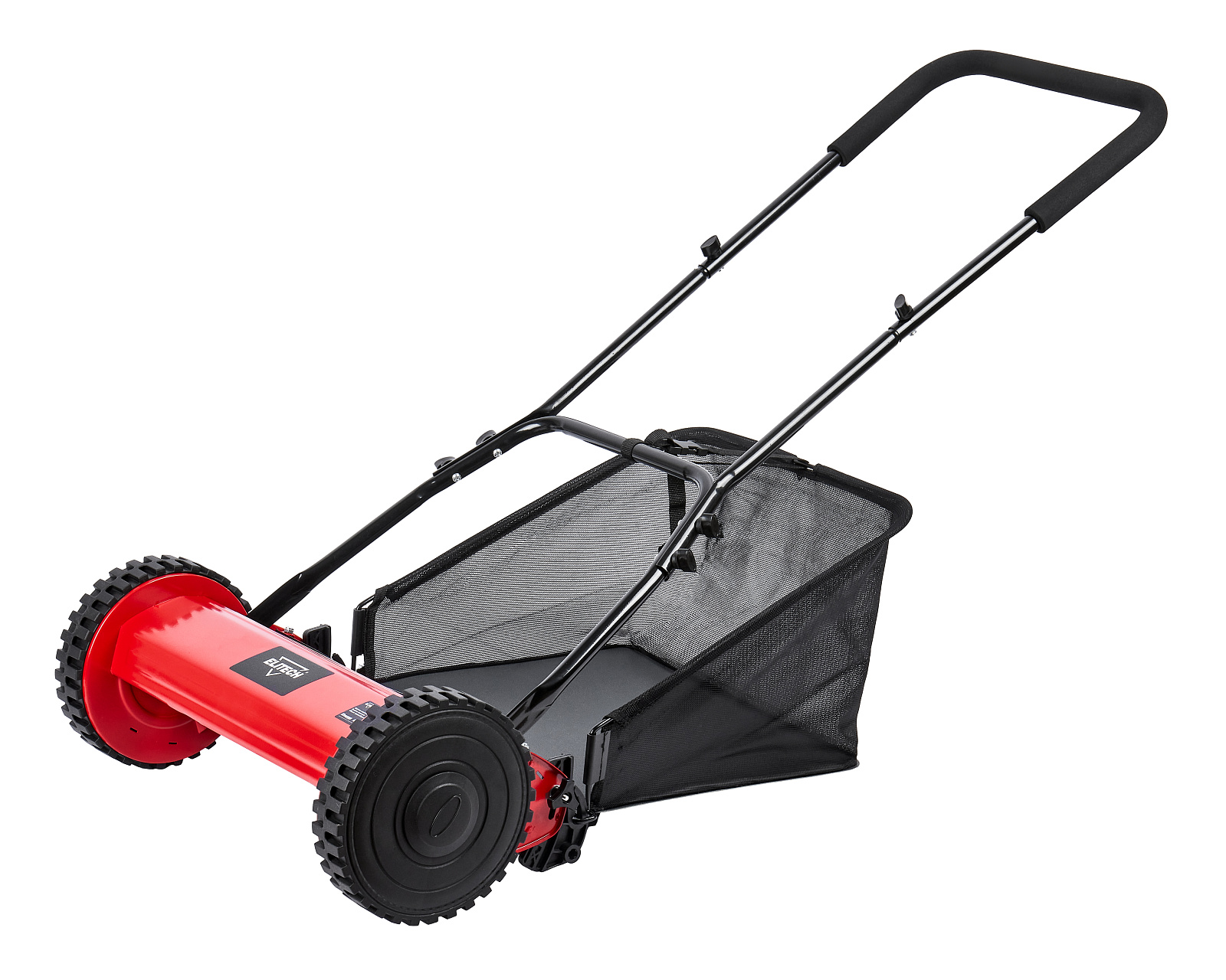 Механическая ручная двухколесная газонокосилка с шириной обработки 410 мм и высотой 17-33 мм, предназначена для скашивания травы на любых подходящих участках, например на дачных и приусадебных.