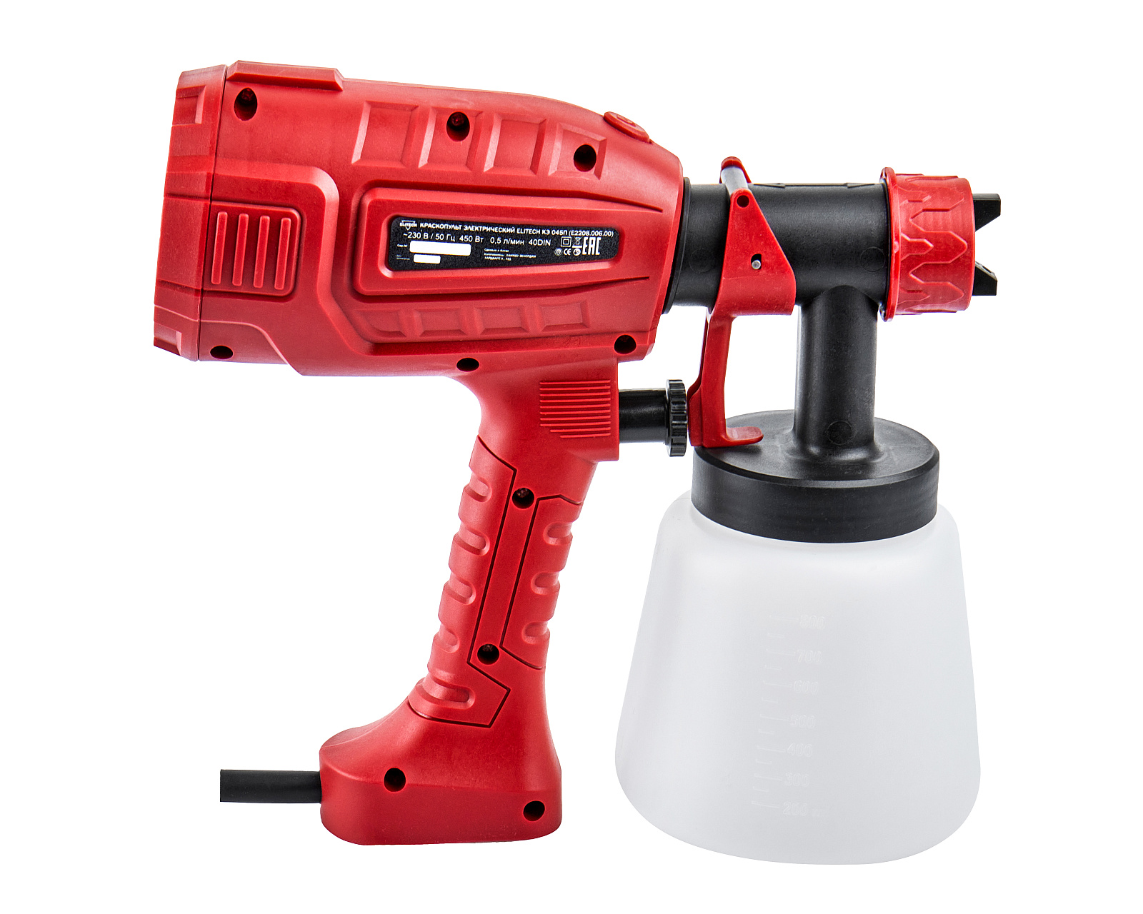 Краскопульт электрический предназначен для распыления эмалевых и водоэмульсионных красок, грунтовок, прозрачных лаков, морилок, средств защиты древесины, масел, дезинфицирующих средств на основе растворителей и воды.Краскопульт НЕ ПРЕДНАЗНАЧЕН для распыления легковоспламеняющихся жидкостей (температура вспышки до 21°С), жидкостей, содержащих абразивные вещества, щелочи, кислоты и волокнистые включения, масляных красок.