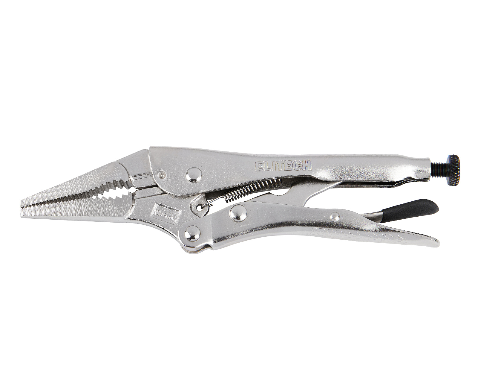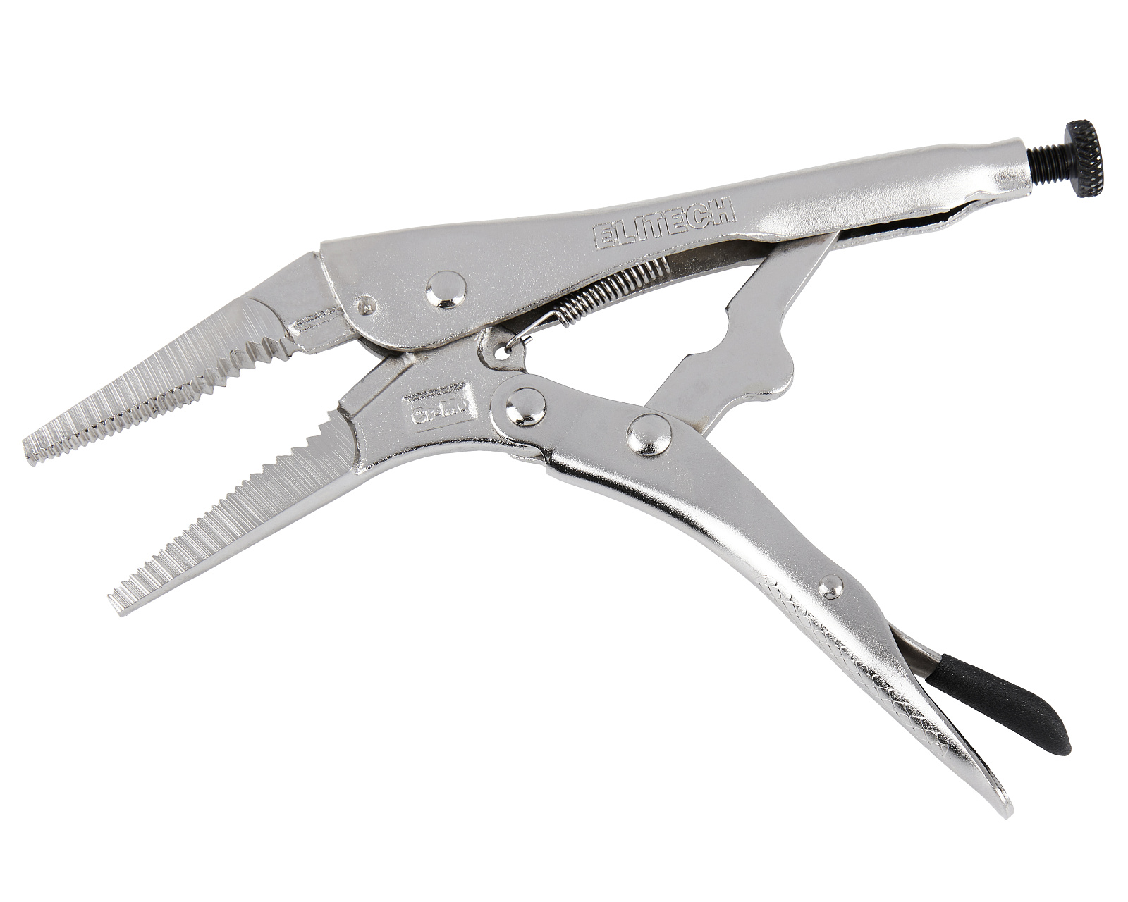Зажимные клещи из хромомолибденовой стали длиной 230 мм с винтом регулировки ширины захвата и блокировки до 70 мм удобно использовать в качестве ручных тисков.