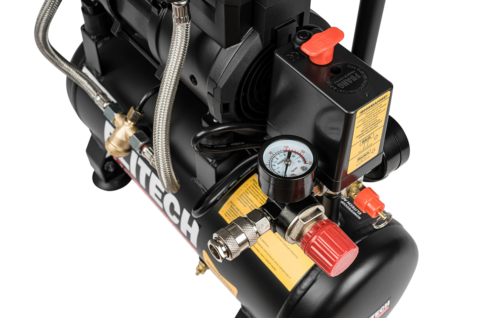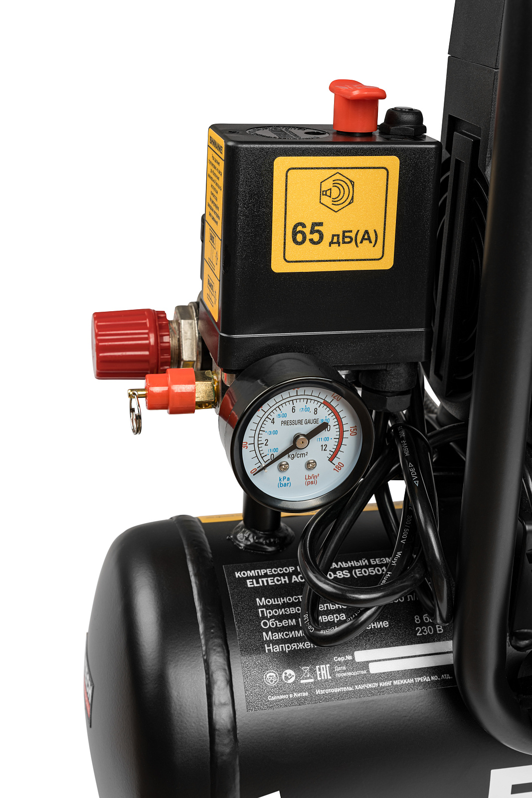 Безмасляный малошумный компрессор мощностью 1 кВт, с производительностью по входу 200 л/мин и ресивером на 8 литров, предназначен для подачи сжатого воздуха с максимальным давлением 8 бар и используется для работы с пневмоинструментом, краскопультами, мовильными и продувочными пистолетами, пистолетами для накачки шин и другим пневматическим оборудованием. На электродвигателе установлена термозащита и предохранитель от перегрузки по току. Компрессор рассчитан на сжатие только атмосферного воздуха. Использование компрессора для сжатия иных газов не допускается.