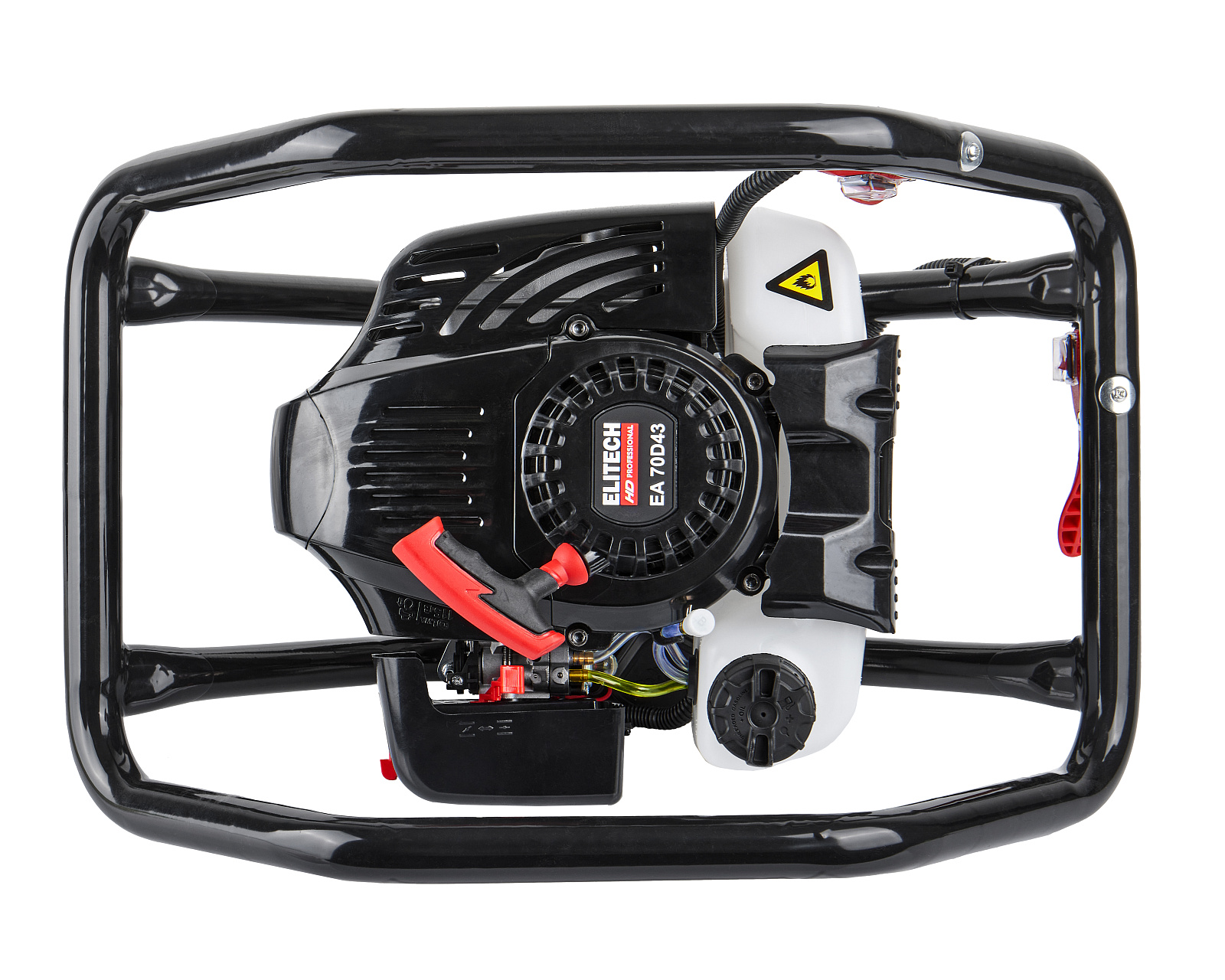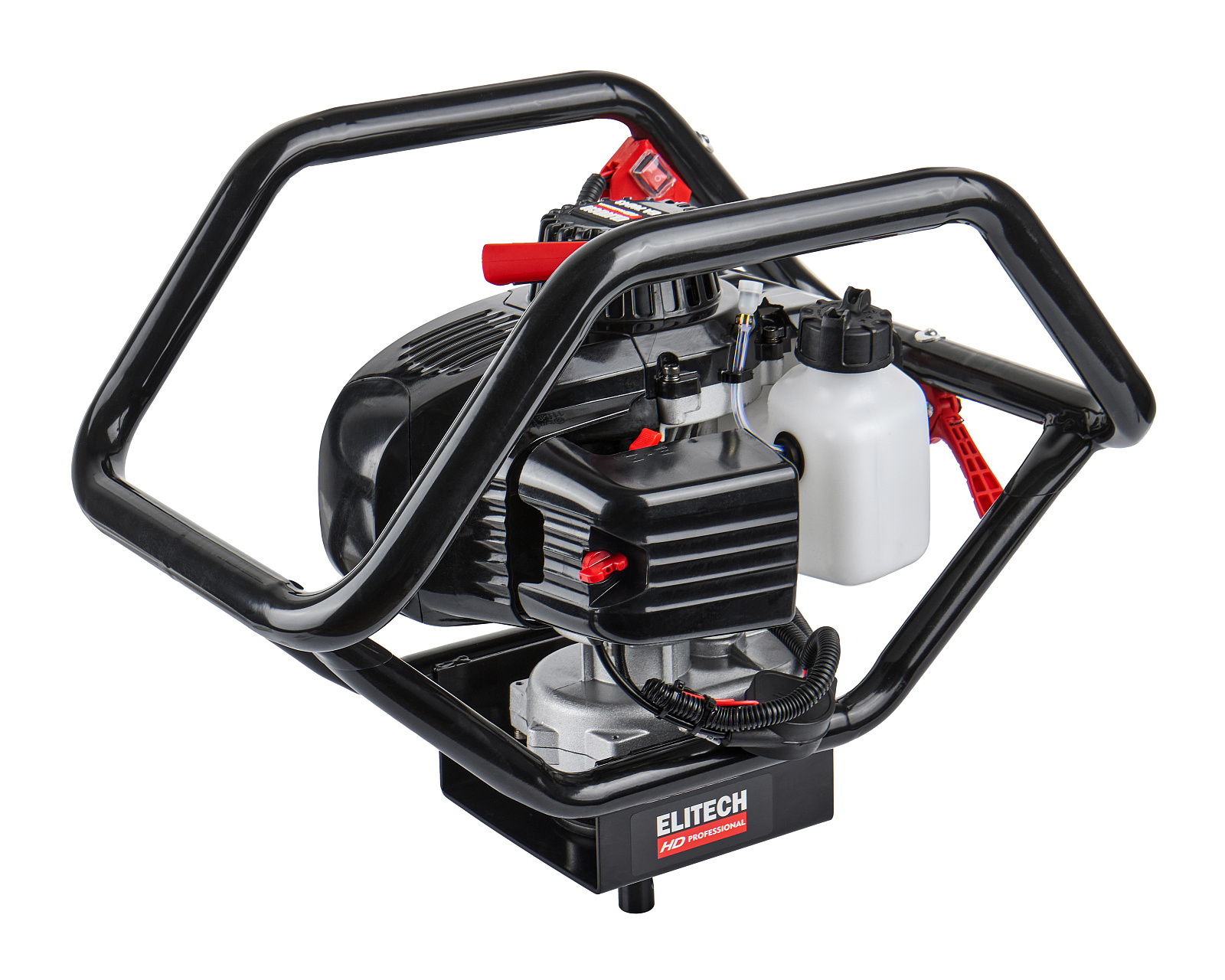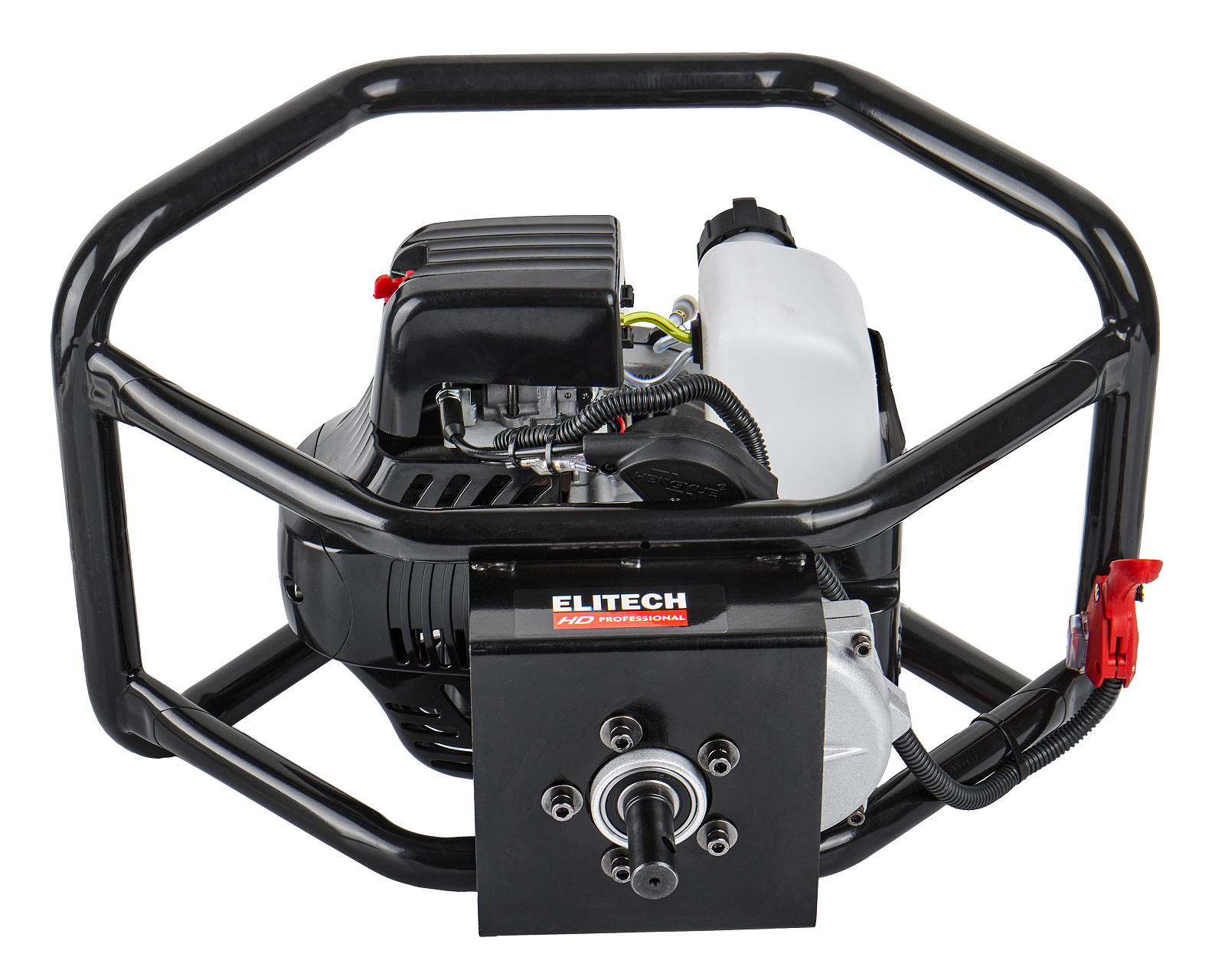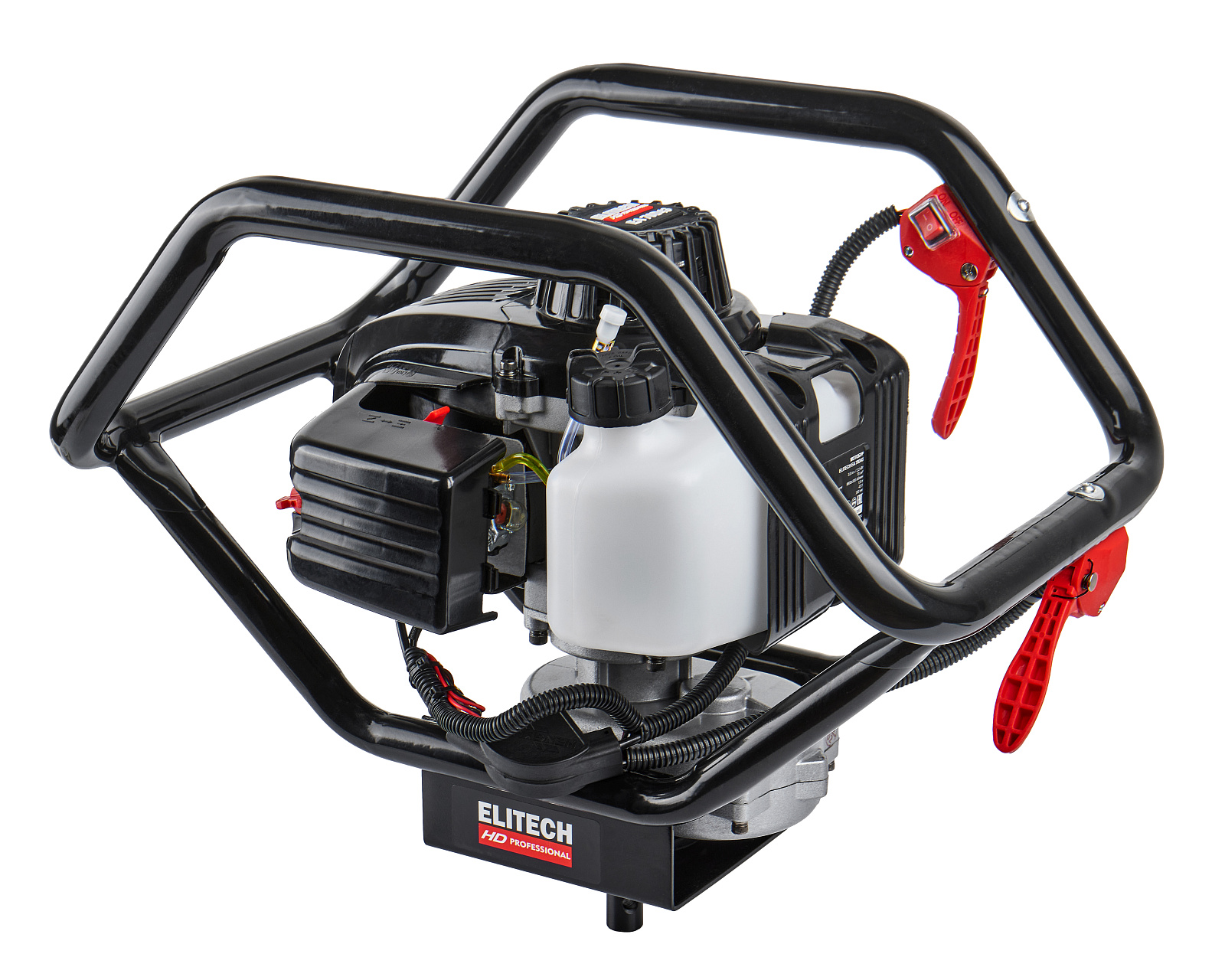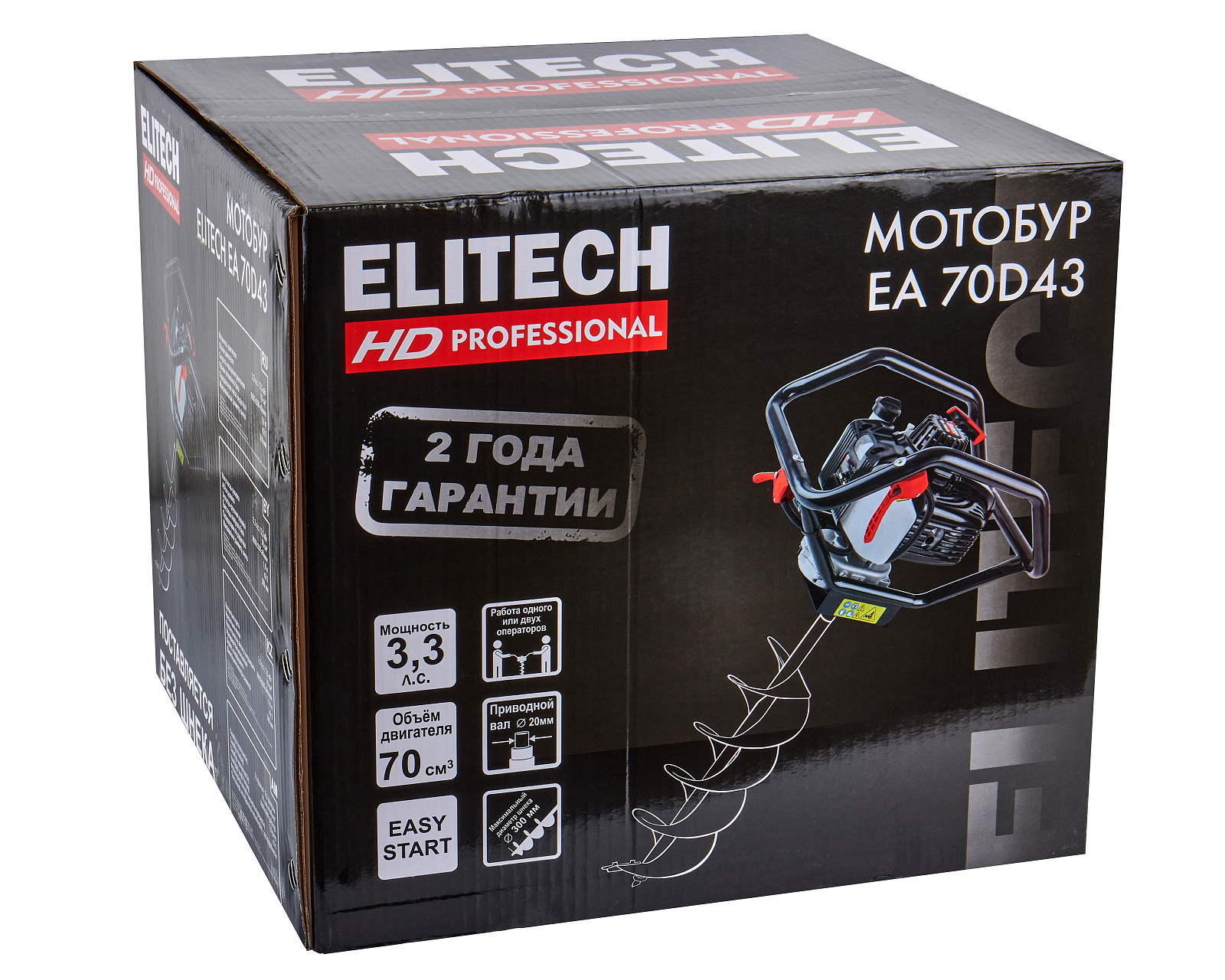 Бензиновый мотобур ELITECH EA 70D43 с двухтактным двигателем мощностью 3,3 л.с. (2,5 кВт) и передаточным числом редуктора 43 к 1, предназначен для бурения грунта и льда шнеком диаметром от 40 мм до 300 мм на глубину до 1,8 метров. При эксплуатации мотобура необходимо правильно выбрать тип шнека (для грунта, для мерзлого грунта или для льда). Шнеки для разных типов грунта отличаются режущей головкой.
