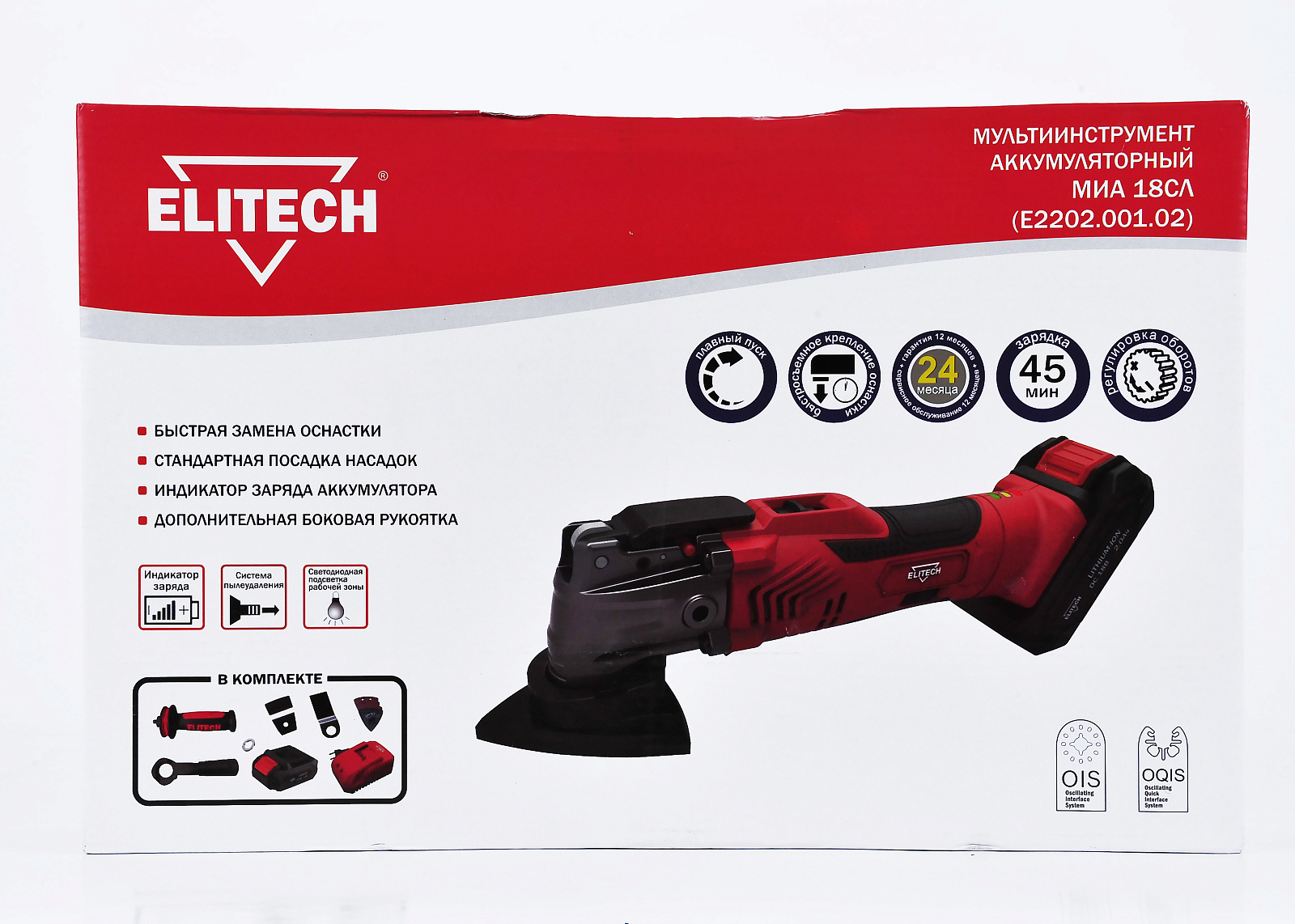 Мультитул аккумуляторный ELITECH МИА 18СЛ (Е2202.001.02) имеет возможность установки на шпиндель различных насадок и позволяет производить операции пиления, резки, шлифовки, обдирки, скобления и полировки. Совместимость: зарядное устройство 1820.098200, аккумуляторы 1820.098600 (2 Ач) и 1820.067700 (4 Ач).