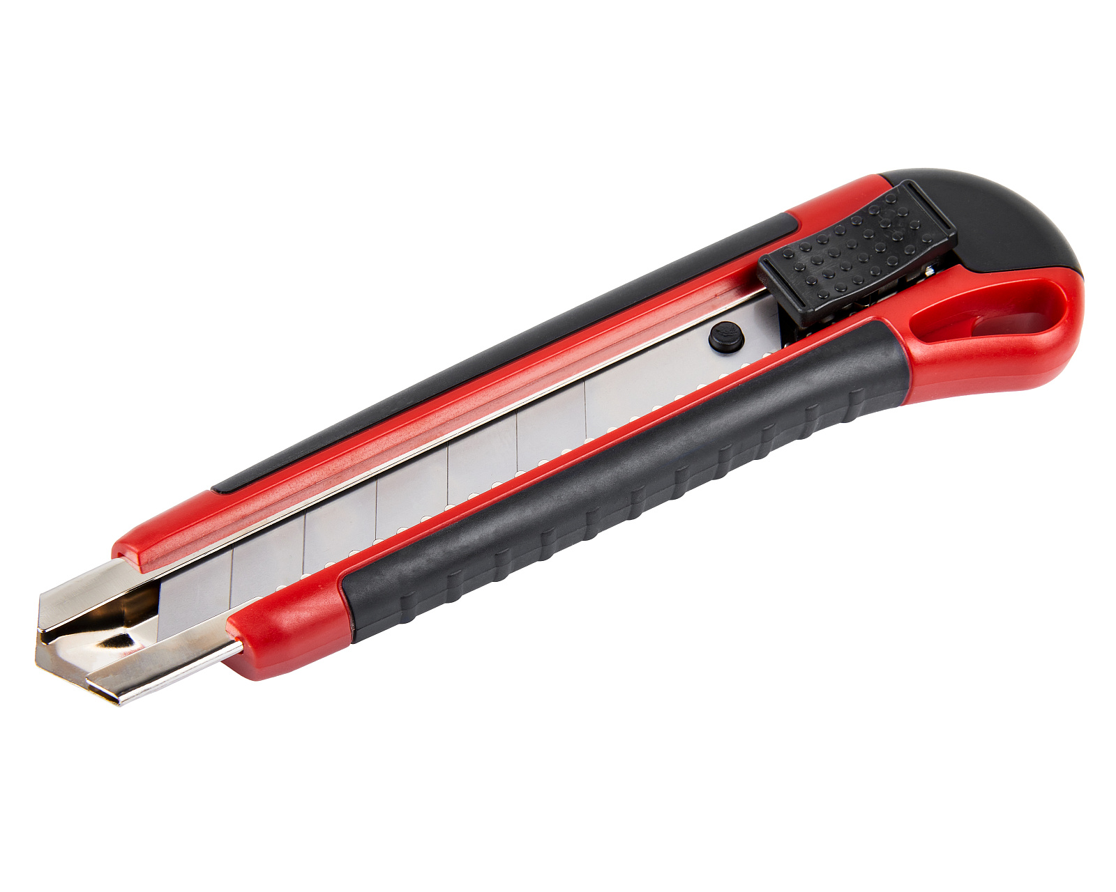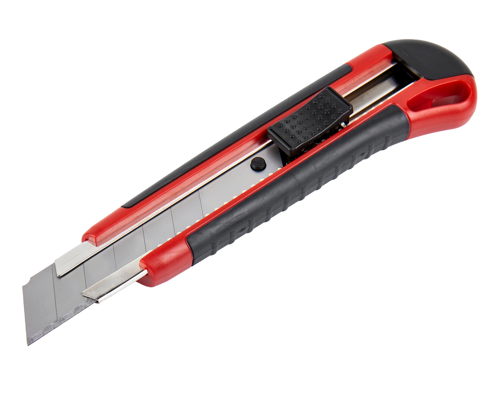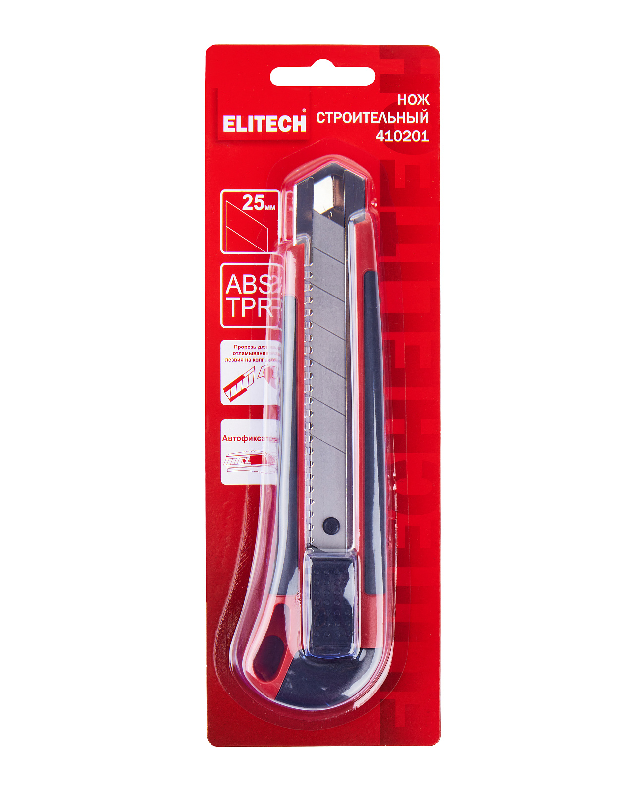 Строительный нож с шириной лезвия 25 мм, автофиксатором и эргономичной обрезиненной рукояткой из ABS-пластика используется для резки различных по твердости материалов.
