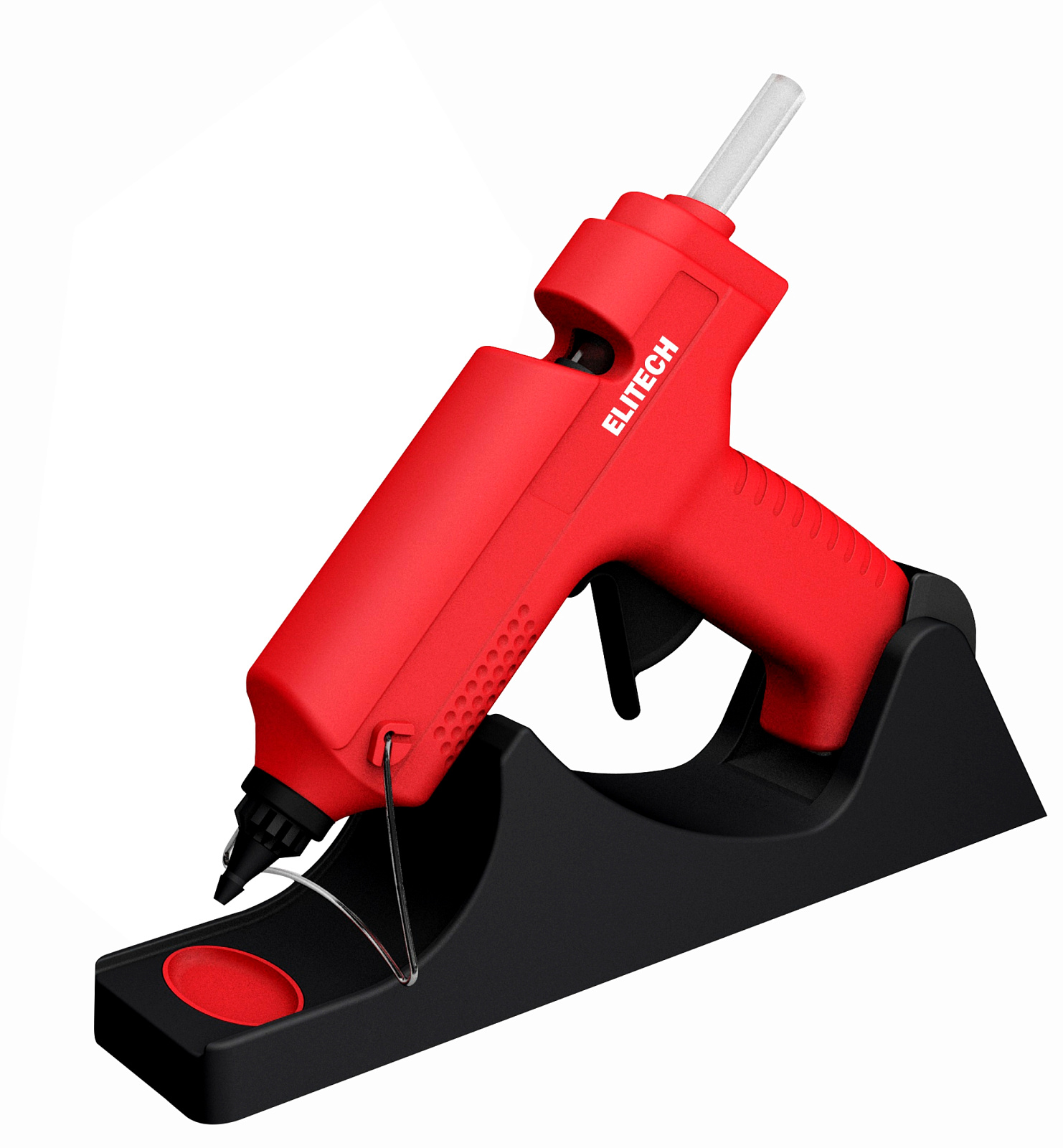 Термоклеевой пистолет мощностью 500 Вт, производительностью 16-20 г/мин. и временем нагрева 3-5 минут, предназначен для быстрой фиксации и склеивания (170°С) чистых, сухих и обезжиренных материалов – дерева, пластмасс, картона, стекла, керамики, камня, ткани, пробки, кожи, металла, термоплавким клеем с диаметром стержня 11,2 мм и длиной 100 мм.