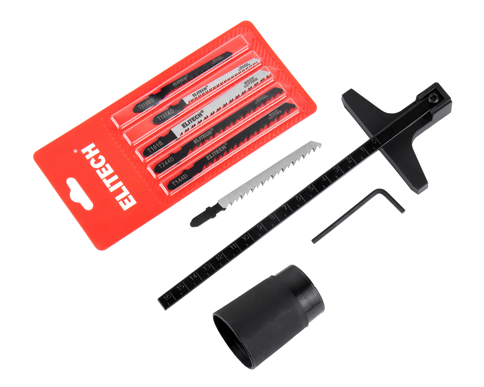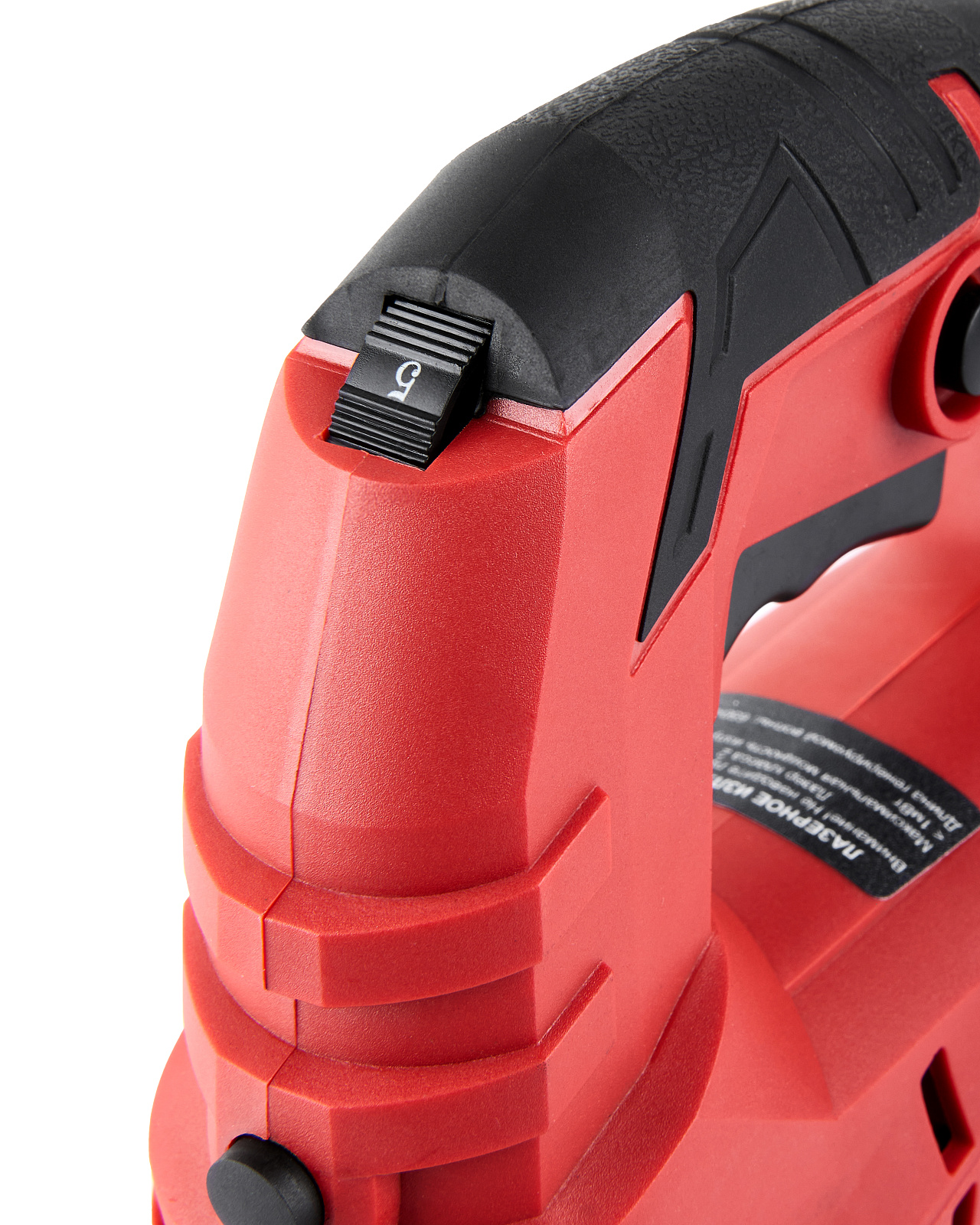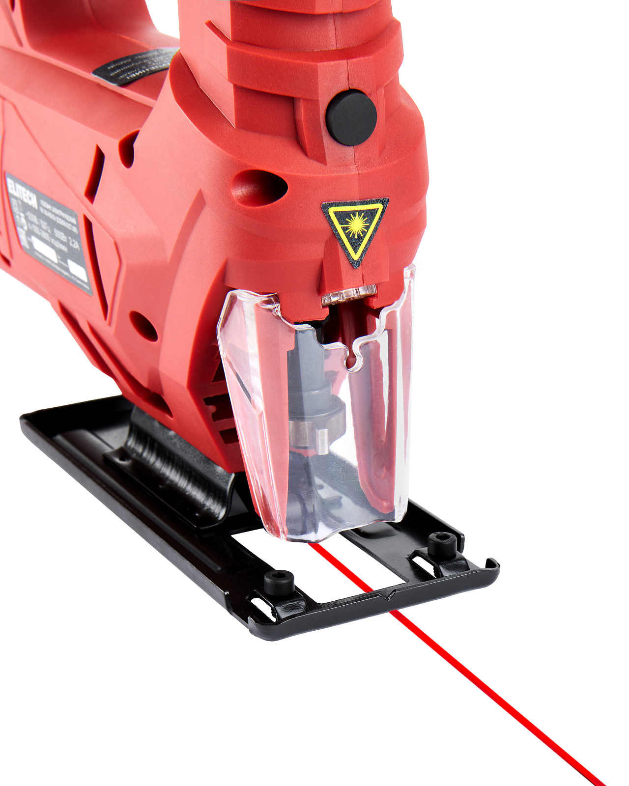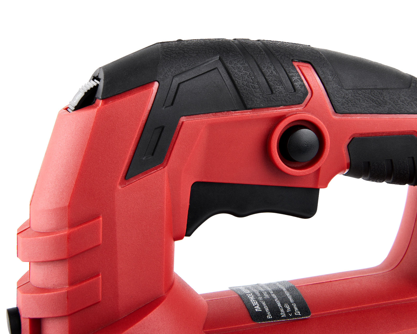 Дополнительно лобзик оснащен быстрозажимным механизмом замены пильного полотна, подсветкой рабочей зоны, лазерным указателем линии реза, возможностью направлять воздушный поток вперед для очистки линии реза, фиксатором кнопки включения в нажатом состоянии, защитным щитком зоны реза. Верхняя рукоятка имеет нескользящую накладку для более надежного удержания.