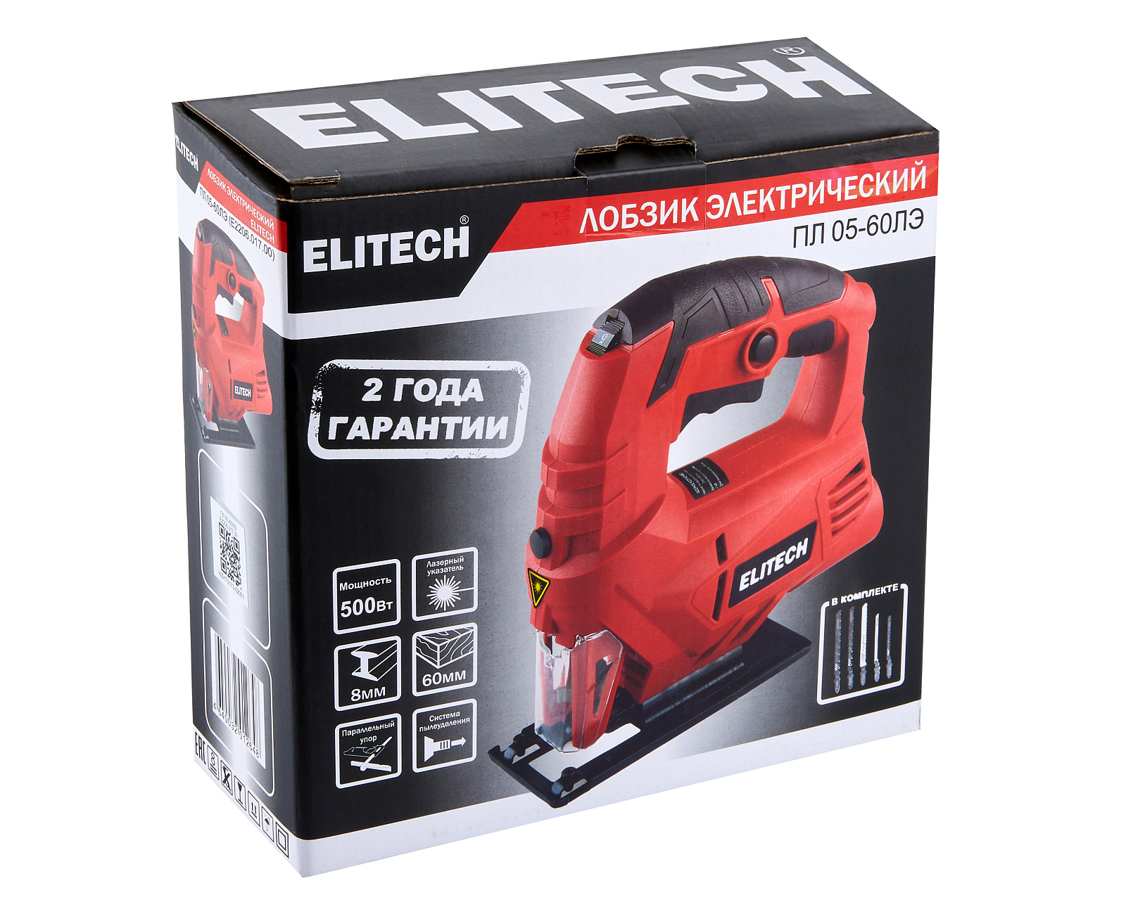 Электролобзик ELITECH ПЛ 05-60ЛЭ мощностью 500 Вт, предназначен для резки древесины, металла, пластика, других строительных и отделочных материалов. Конструкция лобзика позволяет производить пиление по прямой и криволинейной траекториям.
