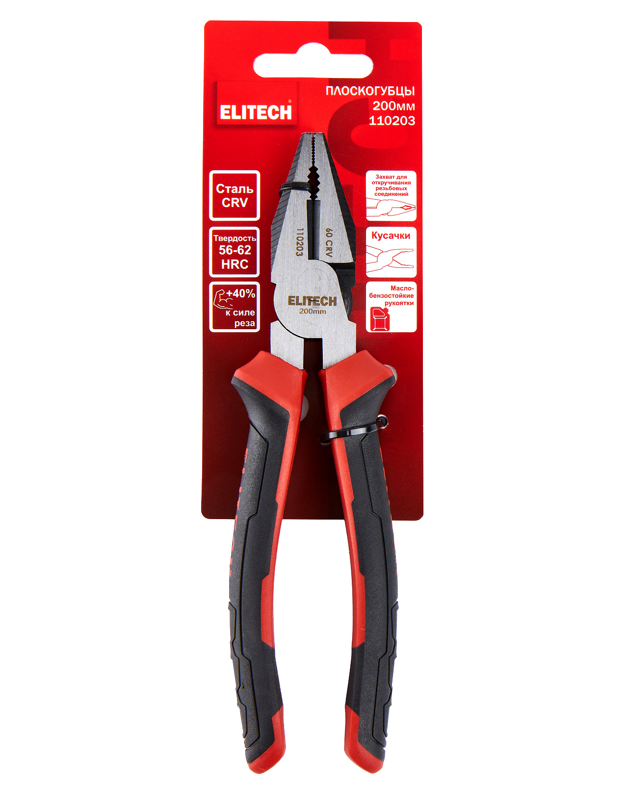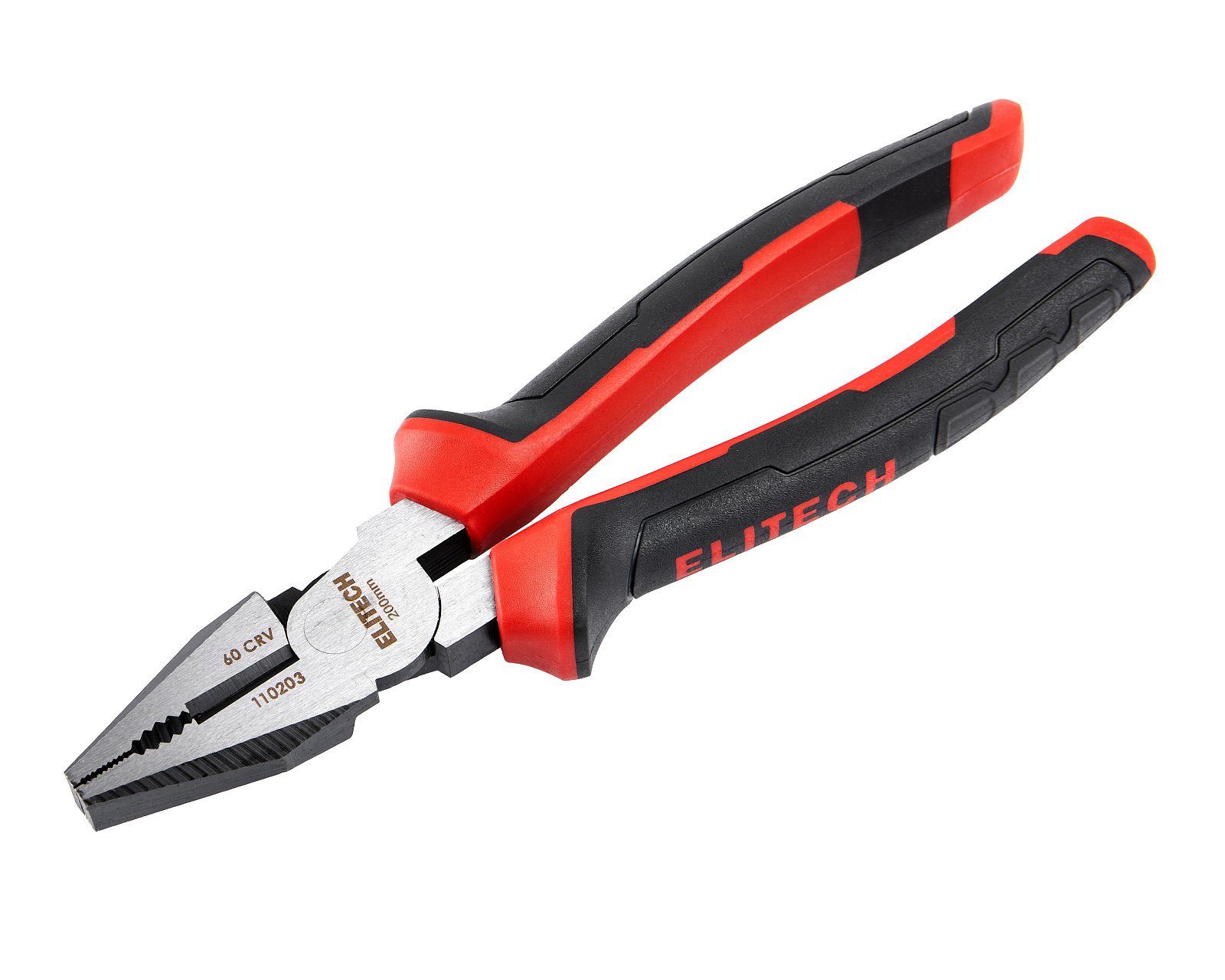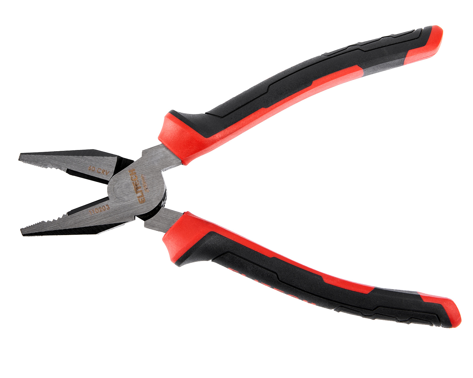 Плоскогубцы длиной 210 мм из хромованадиевой стали твердостью в диапазоне 56-62 HRC, с эргономичными ручками с противоскользящим TPR-покрытием для удобства при работе.