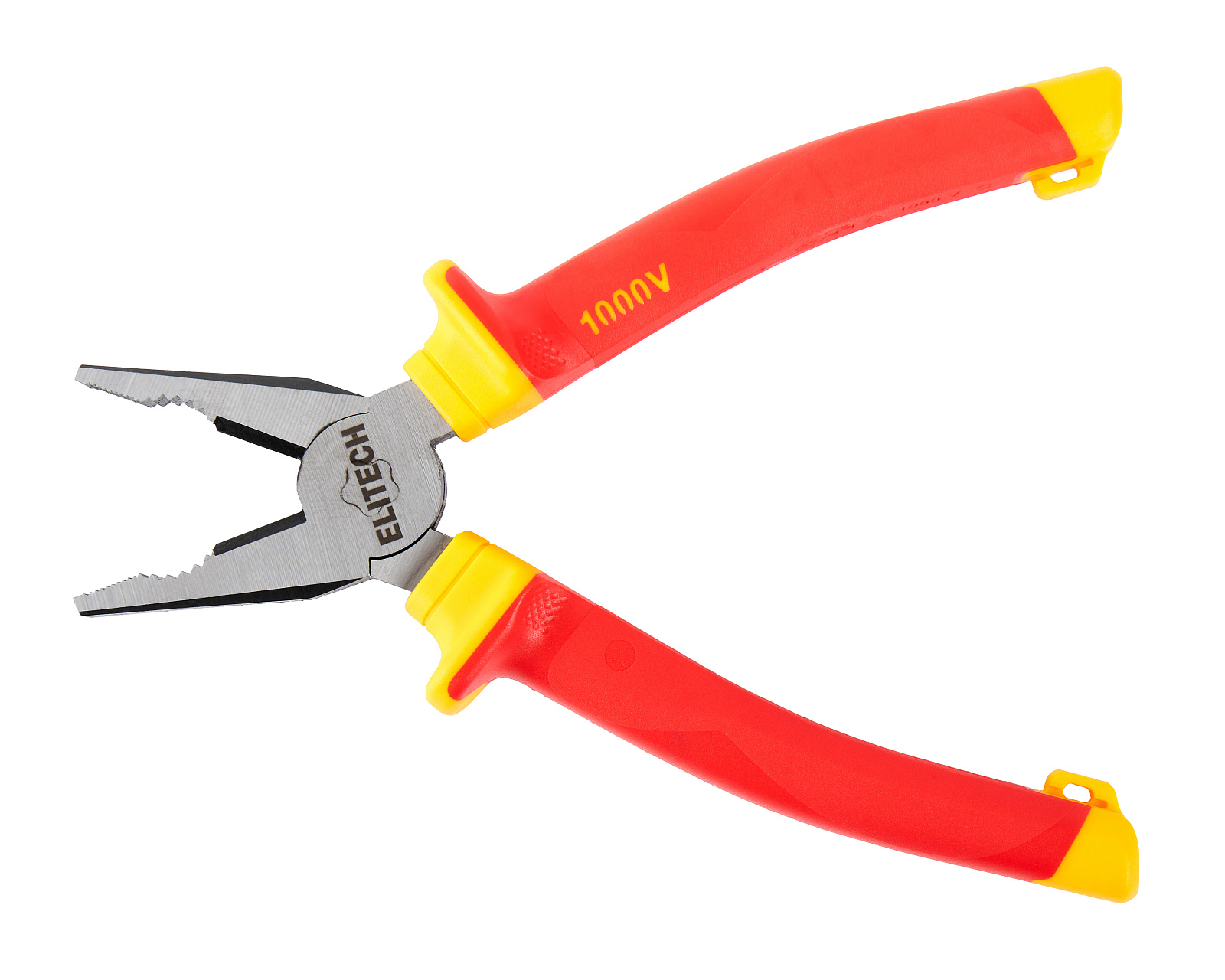 Плоскогубцы длиной 200 мм из хромованадиевой стали с диэлектрическими рукоятками рассчитаны на работу с неизолированными токоведущими деталями под напряжением до 1000 вольт.