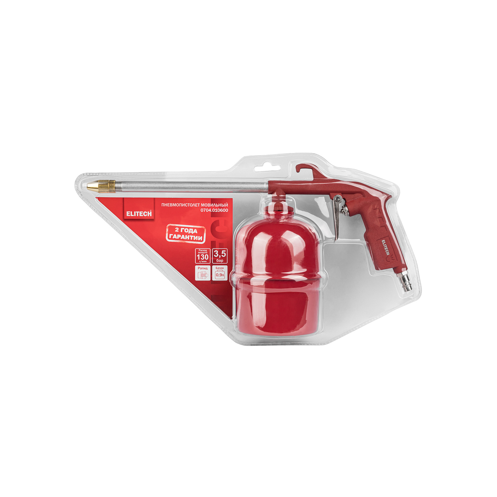 Пневмопистолет мовильный ELITECH 0704.010600 предназначен для заполнения скрытых полостей консервационными составами (мовиль и др.), а также чистки различных поверхностей под давлением разными жидкими составами.