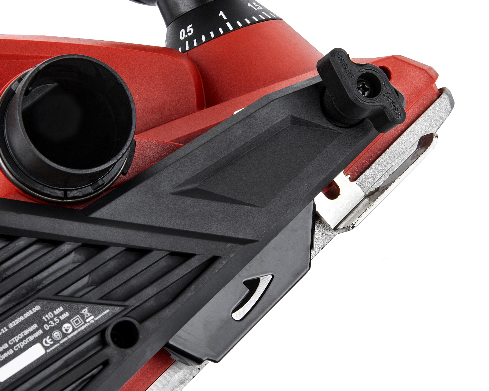 Подключение пылесоса с помощью имеющегося патрубка, обеспечивает сбор стружки или выброс в сторону. Плавная регулировка глубины строгания осуществляется путём поворота опорной ручки. V-обратный паз в подошве обеспечивает лёгкое снятие фасок. Кнопка блокировки от случайного включения делает работу оператора безопасной.