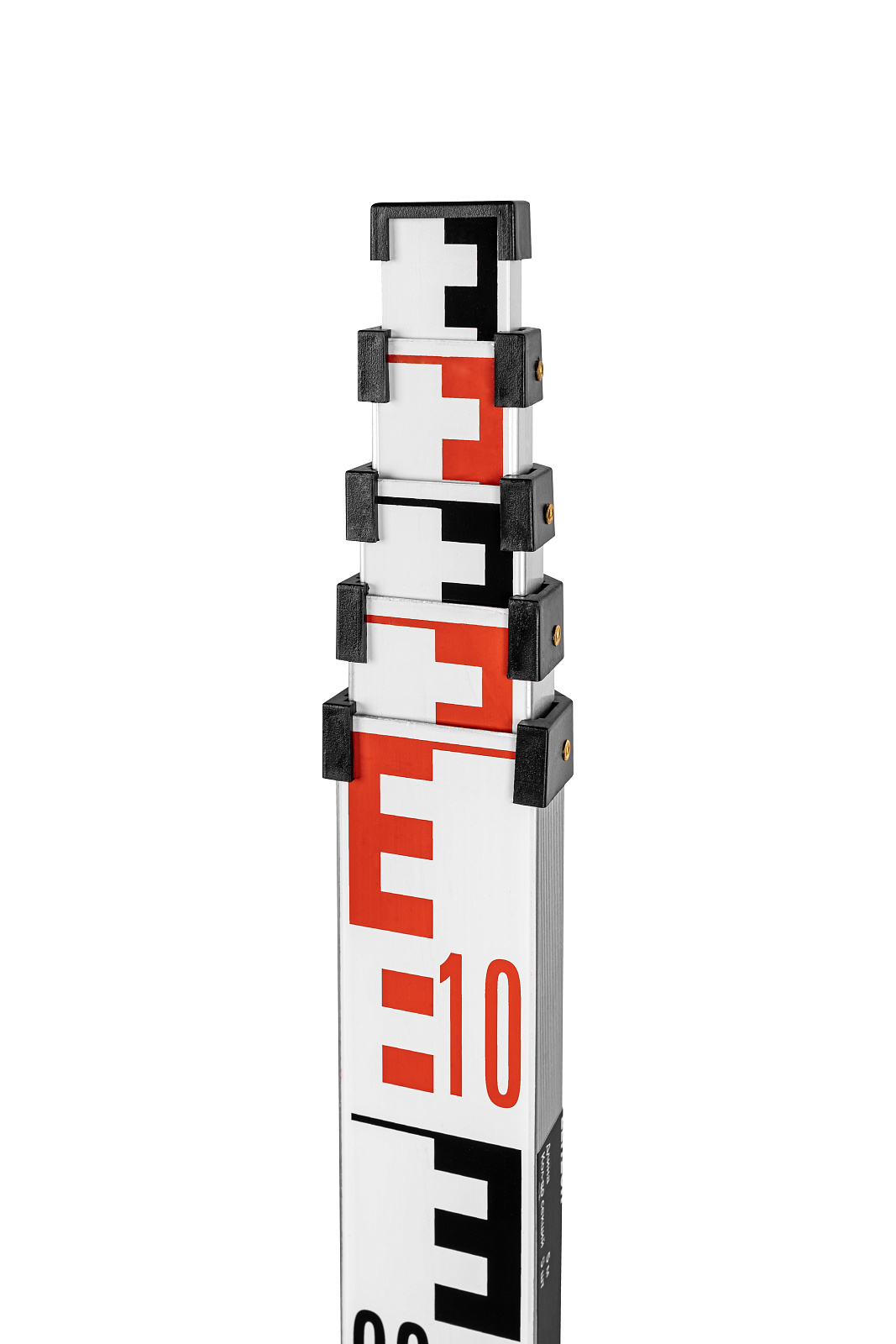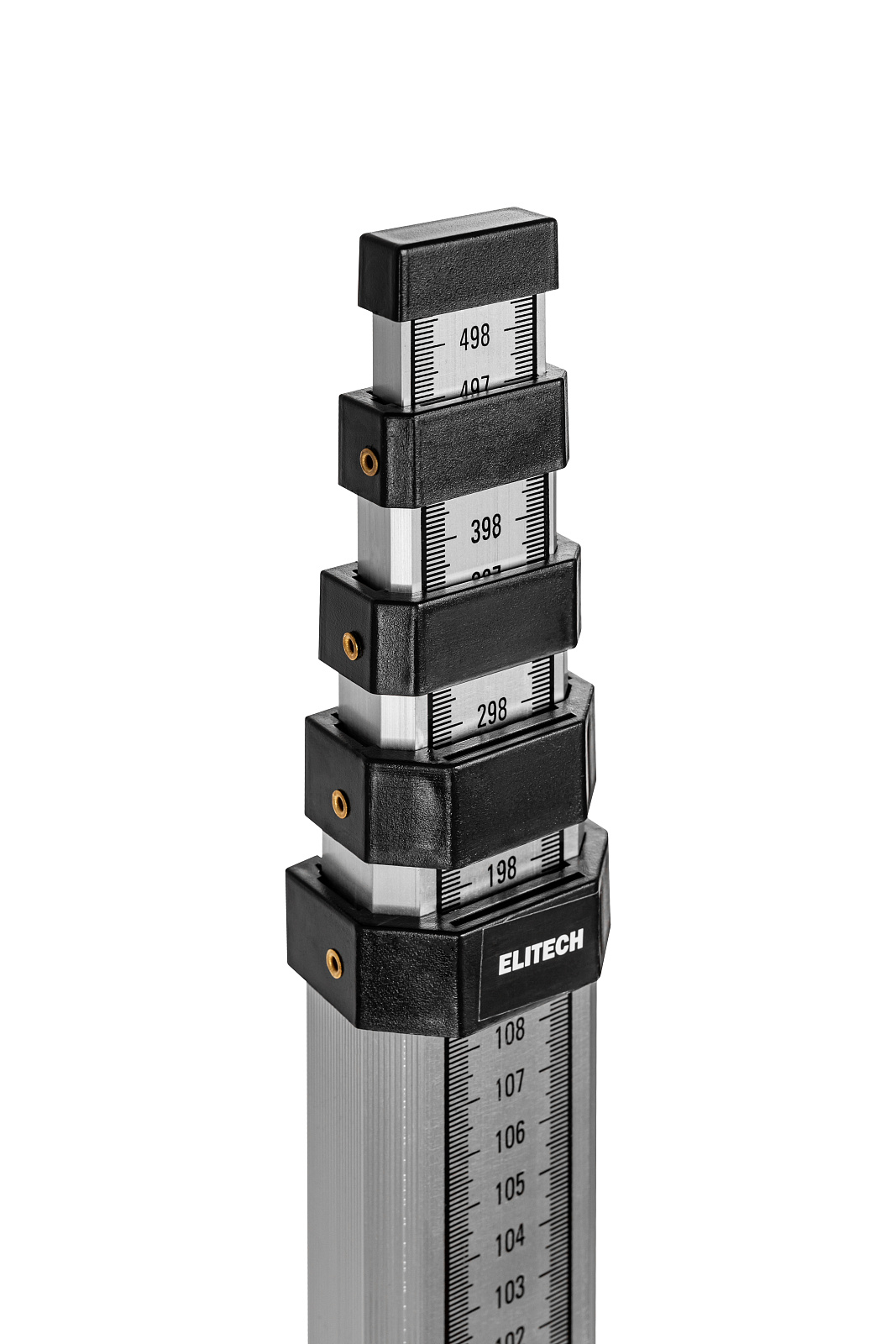 Телескопическая рейка на оборотной стороне имеет пять секций, на каждой из которых нанесена миллиметровая шкала снизу до верху. На лицевой стороне расположена шкала «Е», которая обозначена черно/красным цветом.