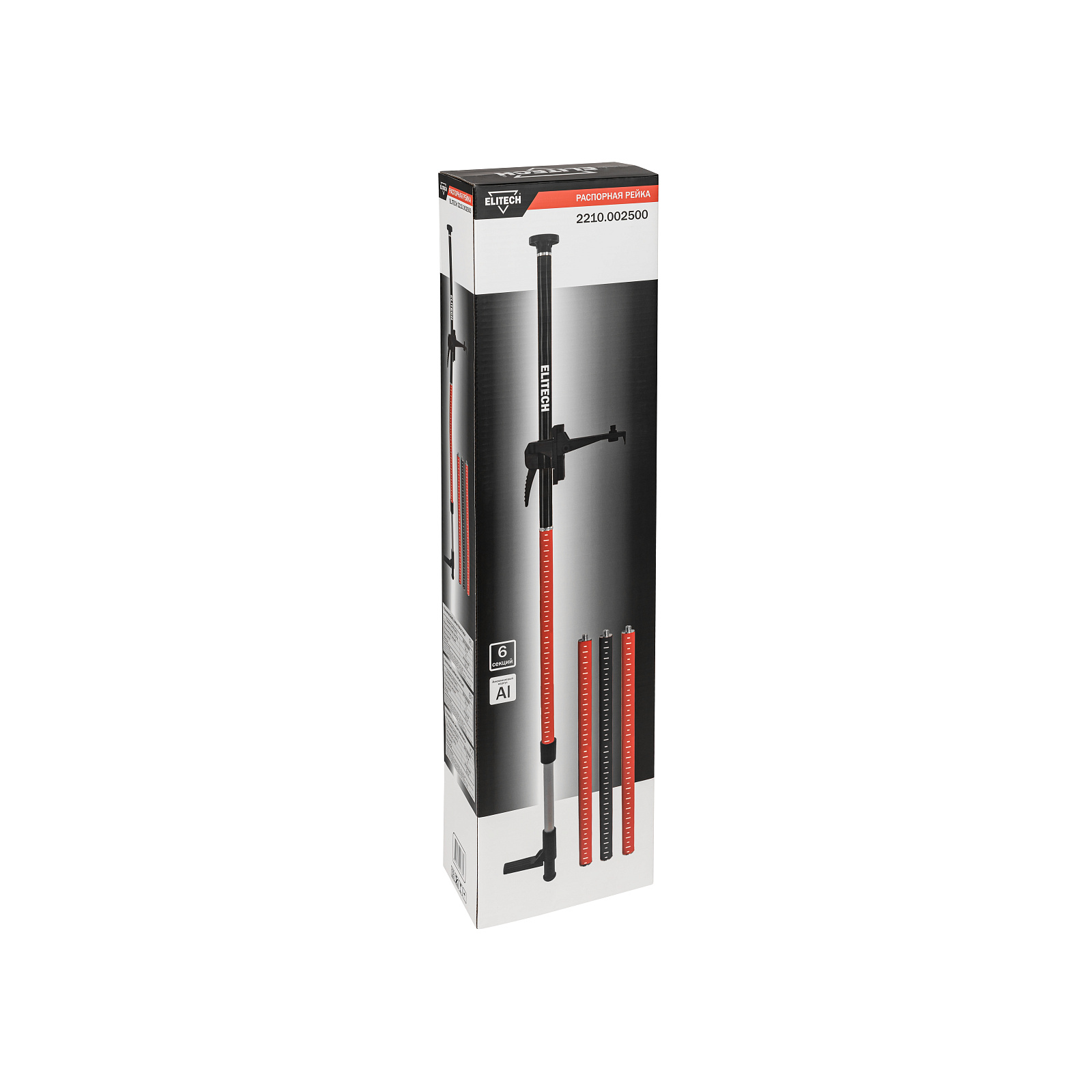 Распорная рейка для установки лазерных нивелиров. Рейка распирается между полом и потолком. Количество секций 6, можно регулировать высоту добавляя или убирая секции. Верхние две секции неразъемные телескопические и позволяют произвести установку рейки под любую высоту потолка в пределах 3,6 метров. Дополнительный штатив-тринога в комплект к данной рейке не входит.