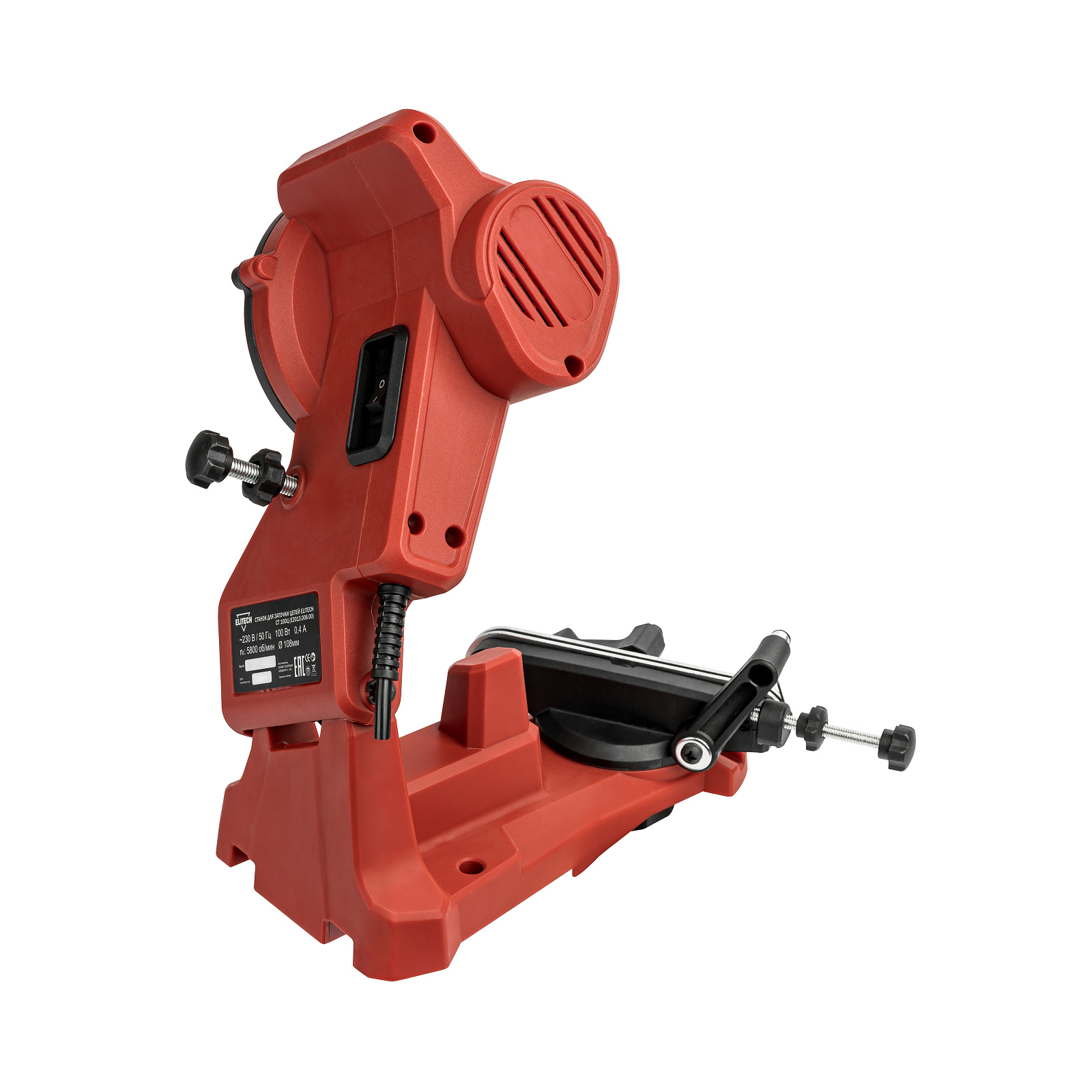 Станок мощностью 100 Вт и с кругом диаметром 108 мм, предназначен для заточки режущих зубьев пильной цепи бензиновых и электрических цепных пил. В стандартной комплектации станок с диском толщиной 3,2 мм позволяет затачивать цепи с шагом 1/4', 0,325” и 3/8”LP (низкий профиль). Для цепей с шагом 3/8” и 0,404” необходимо использовать диск, толщиной 4,5 мм (в комплект не входит).