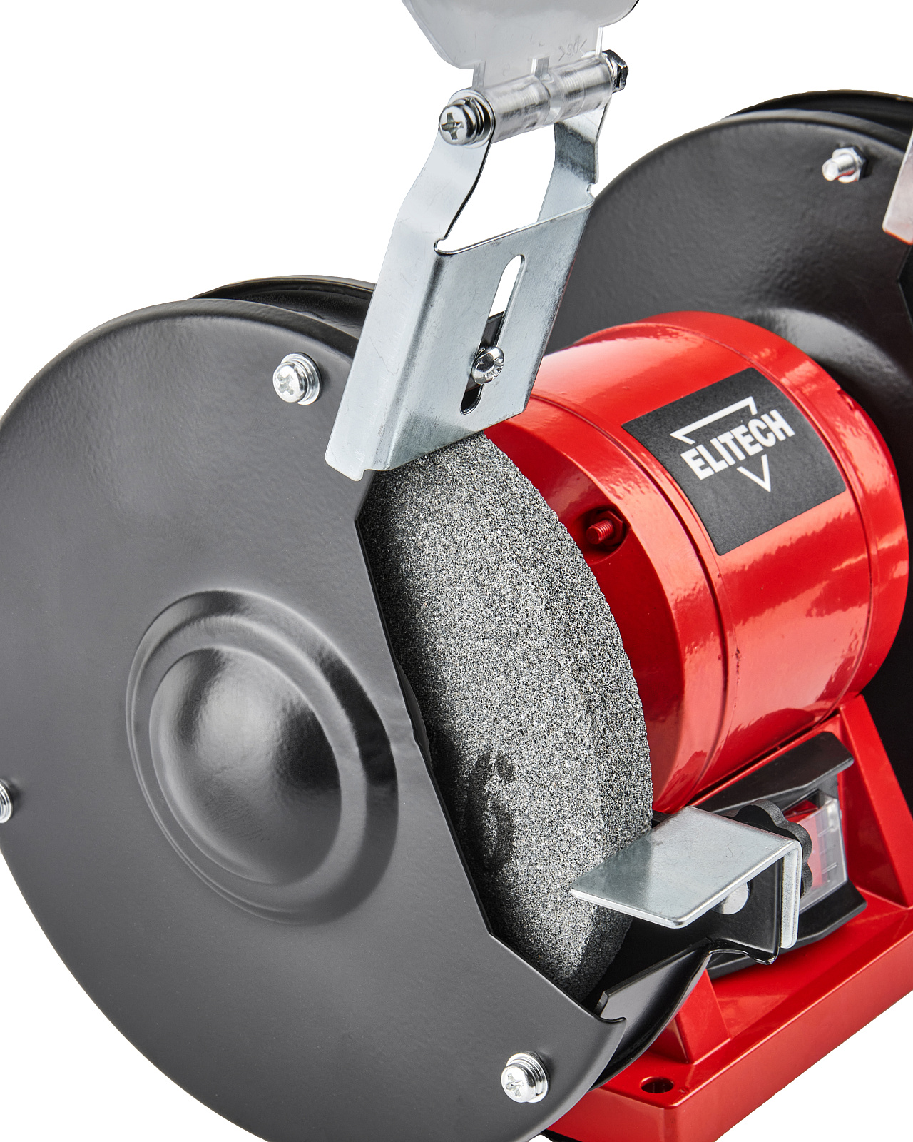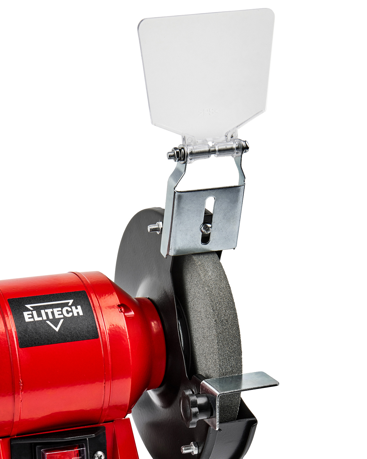 Электрическое точило Elitech СТ 150 (E2013.002.00) мощностью 250 Вт предназначено для обработки шлифованием различных предметов, заточки дерево и металлообрабатывающего инструмента, шанцевого и садового инструмента. Посадка шлифовальных кругов осуществляется через металлические фланцы, что обеспечивает очень низкий уровень вибрации при работе. Диаметр круга 150 мм, толщина 16 мм, посадочный диаметр 12,7 мм. Перед кругами установлены регулируемые упоры для обрабатываемых предметов с пазами для заточки сверл. Открытая часть кругов имеет защиту в виде регулируемого прозрачного экрана, что позволяет защитить пользователя от искр и осколков при работе. В станине есть отверстия для фиксации точила к основанию.