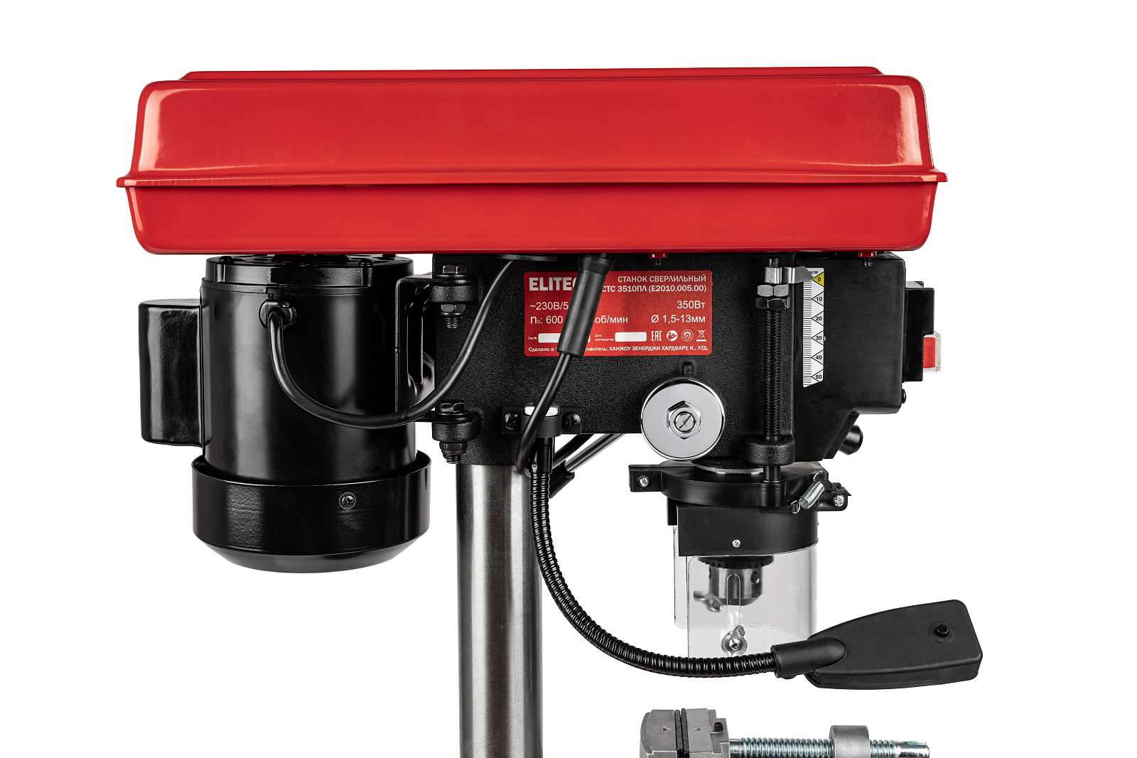 Станок сверлильный мощностью 350 Вт и ходом шпинделя 50 мм, предназначен для обработки различных материалов (металл, дерево, пластмасса и т.д.) вращающимся сверлильным или шлифующим инструментом (с возможностью осевого перемещения).
