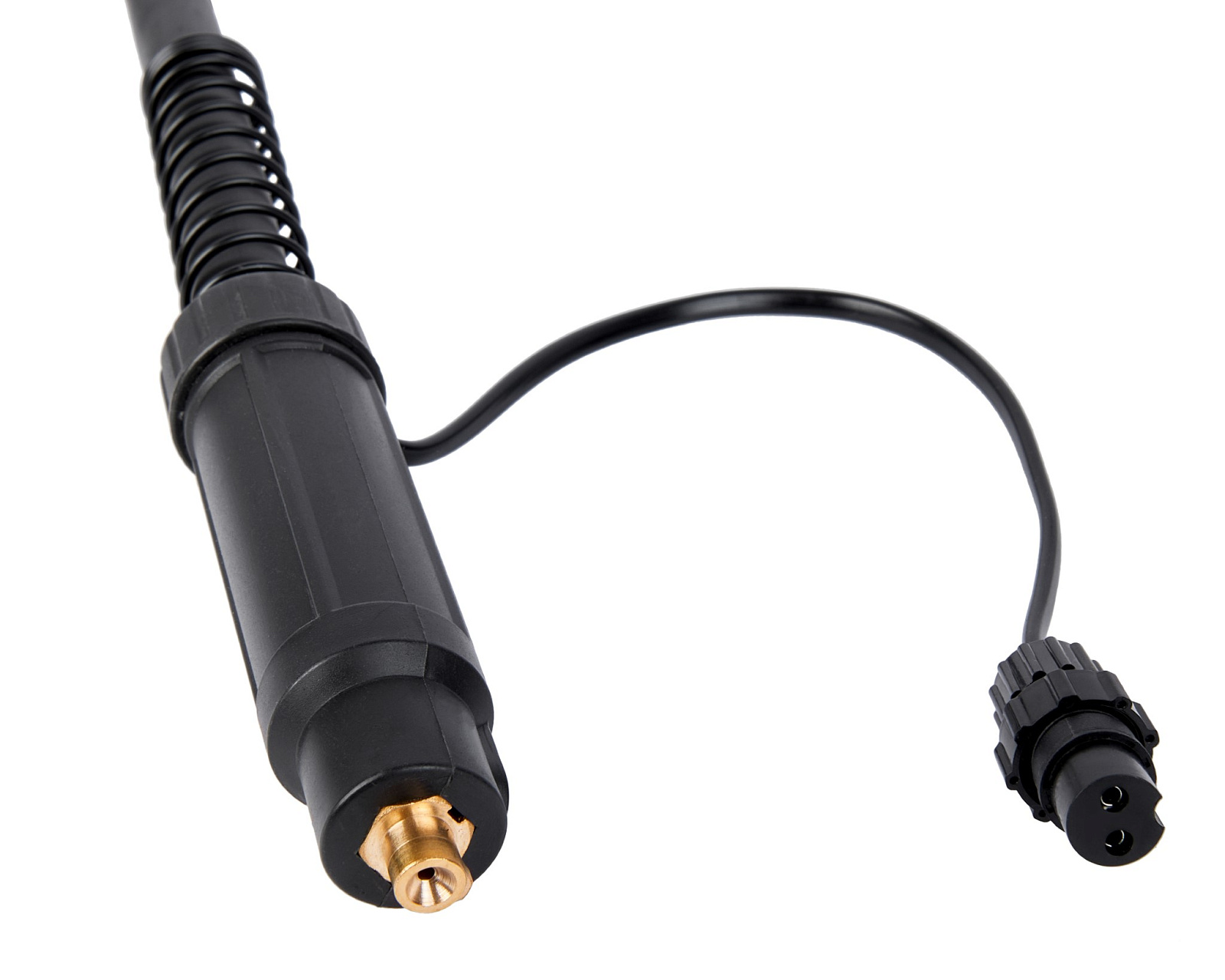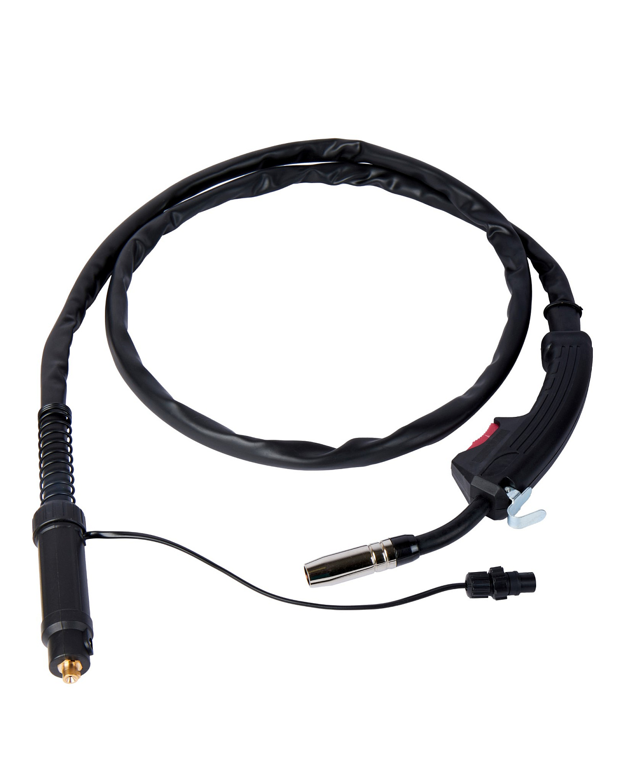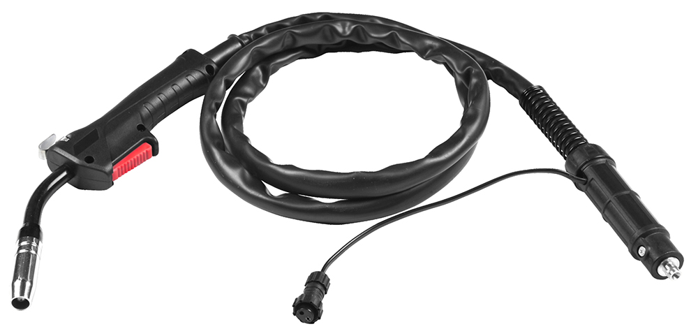 Горелка длиной 2 м, подключается к аппарату ИС 120 СИН ЖК и используется для проведения сварочных работ методом MIG с помощью специальной порошковой проволоки FLUX без использования защитного газа.