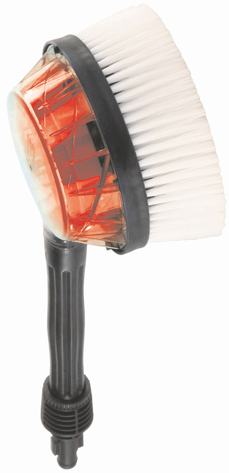 Насадка на пистолет «грязевая фреза» (внутри находится подвижный круглый элемент) создает конический вращающийся и пульсирующий поток воды для смыва обильных загрязнений с различных, в том числе труднодоступных, поверхностей.