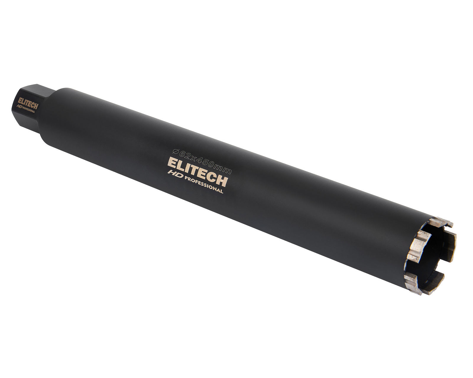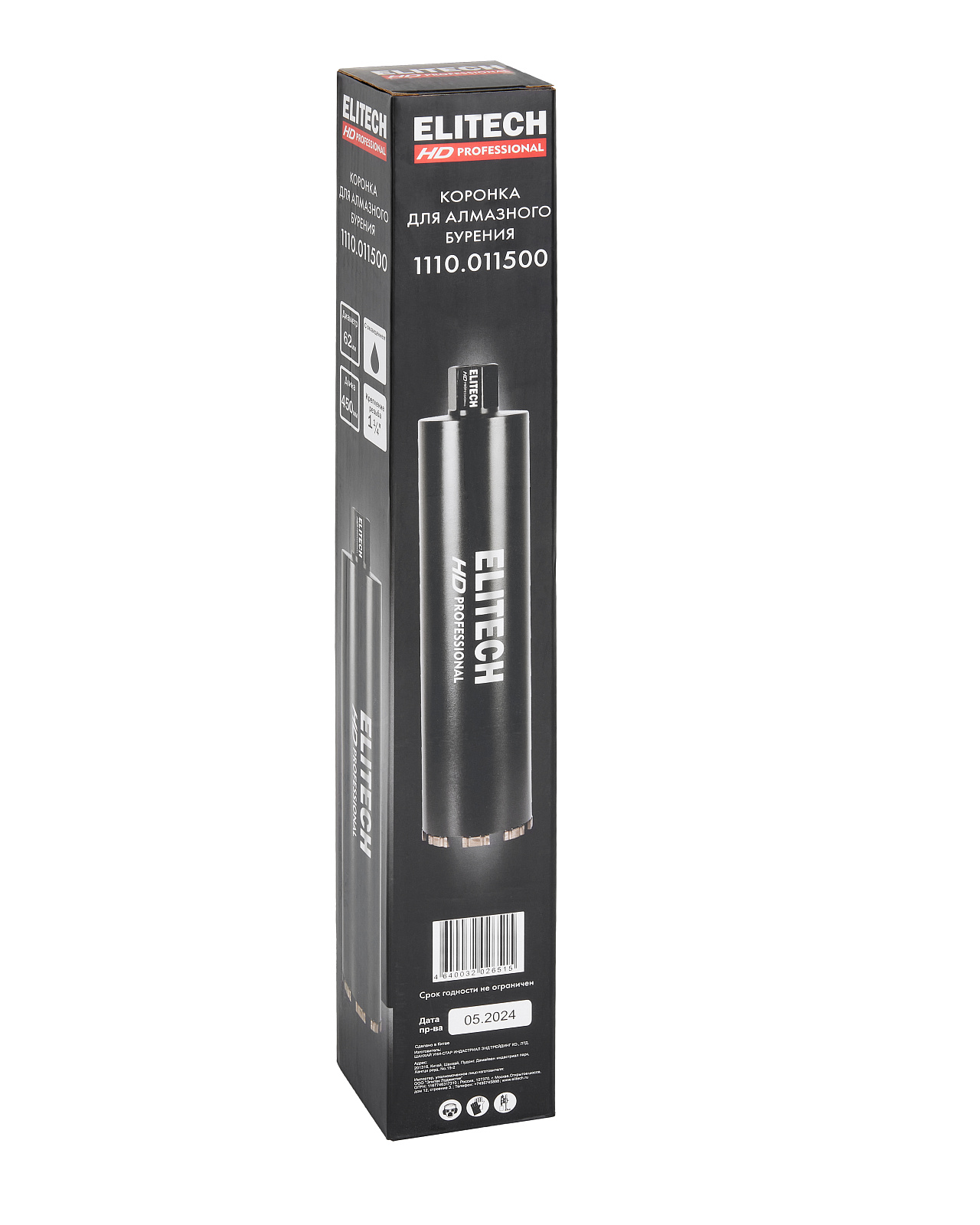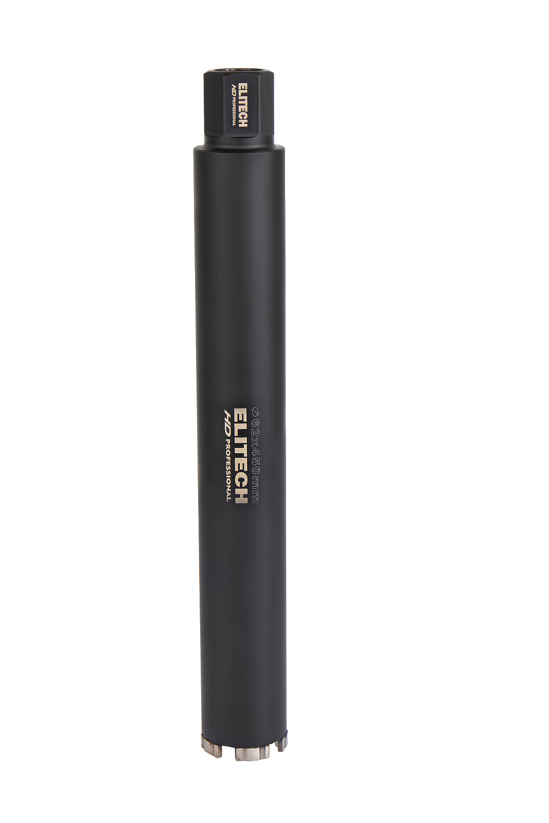 Алмазная коронка диаметром 62 мм и длиной 450 мм с резьбовым креплением 1 1/4'' применяется для сверления/бурения с охлаждением твердых материалов, таких как бетон, кирпич, гранит, мрамор, при использовании установок алмазного бурения.