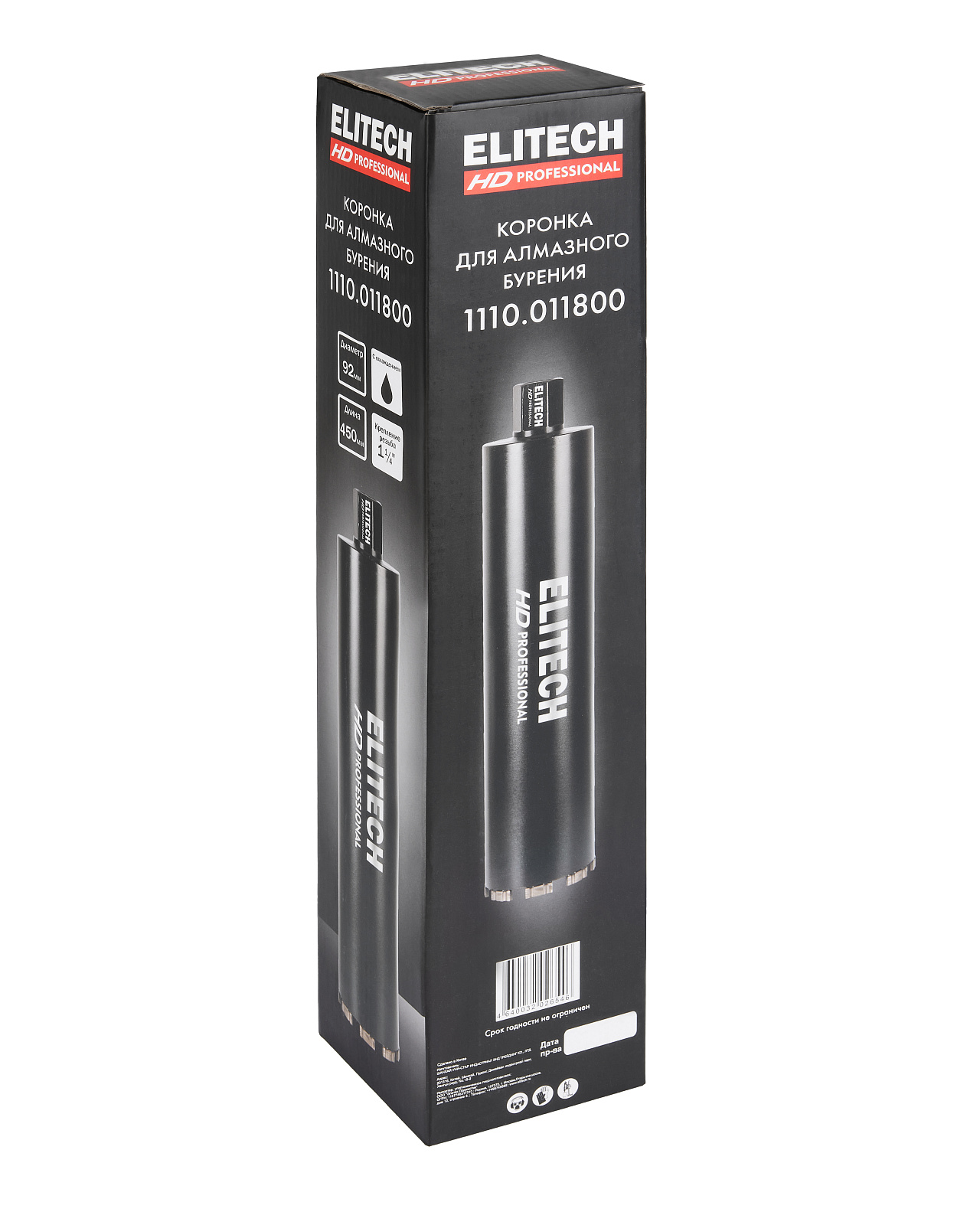 Алмазная коронка диаметром 92 мм и длиной 450 мм с резьбовым креплением 1 1/4'' применяется для сверления/бурения с охлаждением твердых материалов, таких как бетон, кирпич, гранит, мрамор, при использовании установок алмазного бурения.