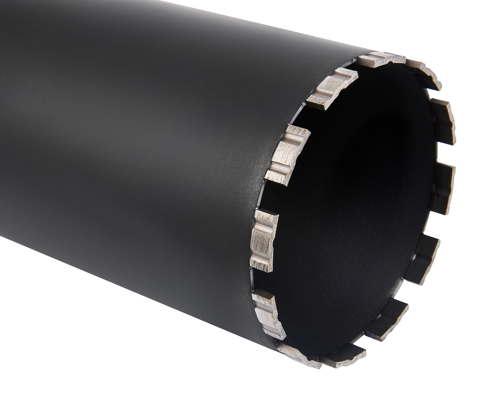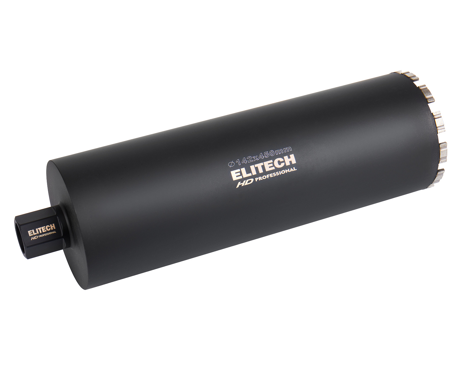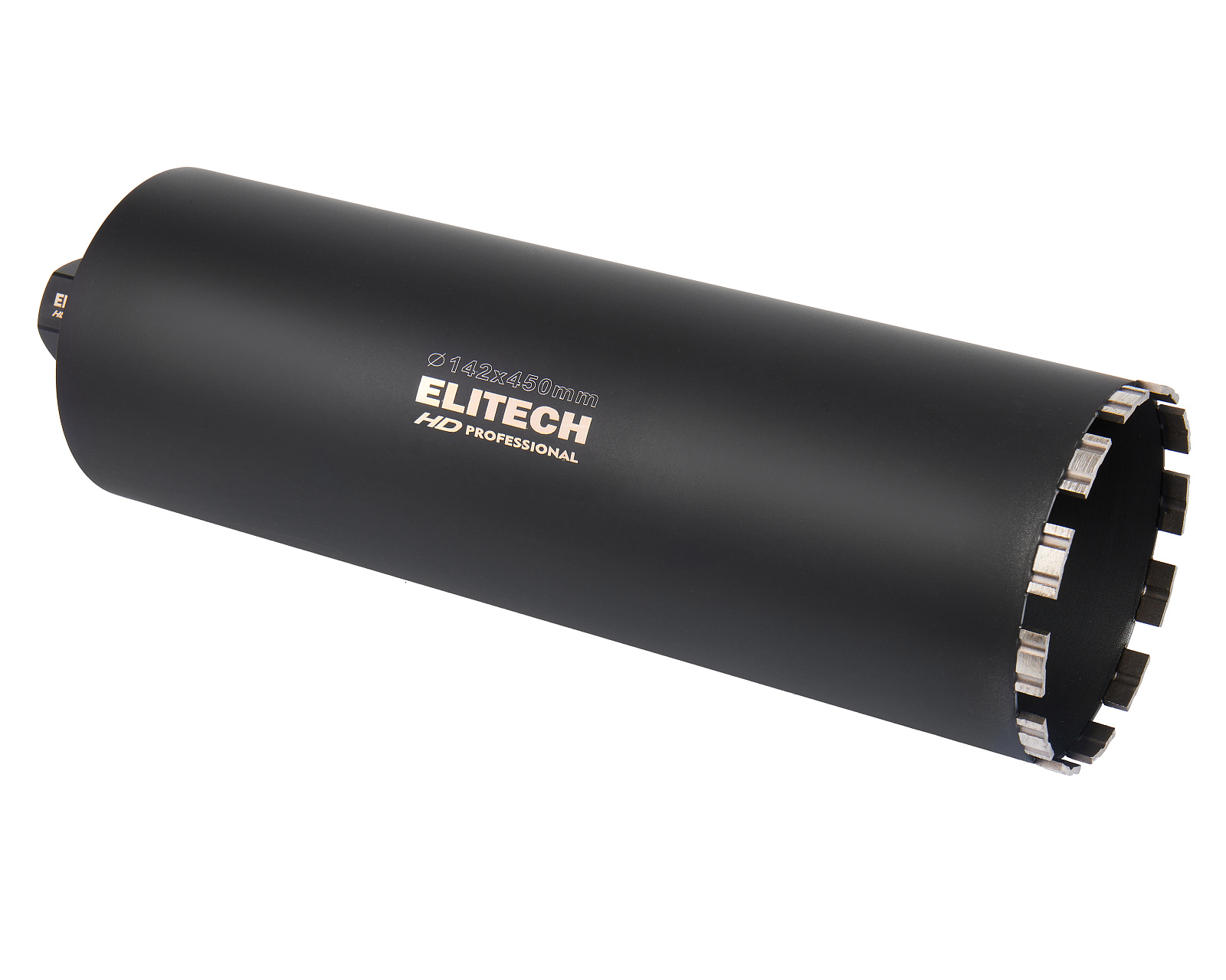 Алмазная коронка диаметром 142 мм и длиной 450 мм с резьбовым креплением 1 1/4'' применяется для сверления/бурения с охлаждением твердых материалов, таких как бетон, кирпич, гранит, мрамор, при использовании установок алмазного бурения.