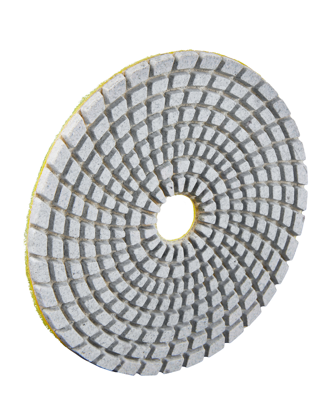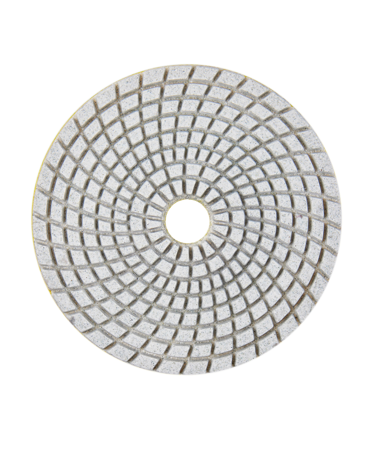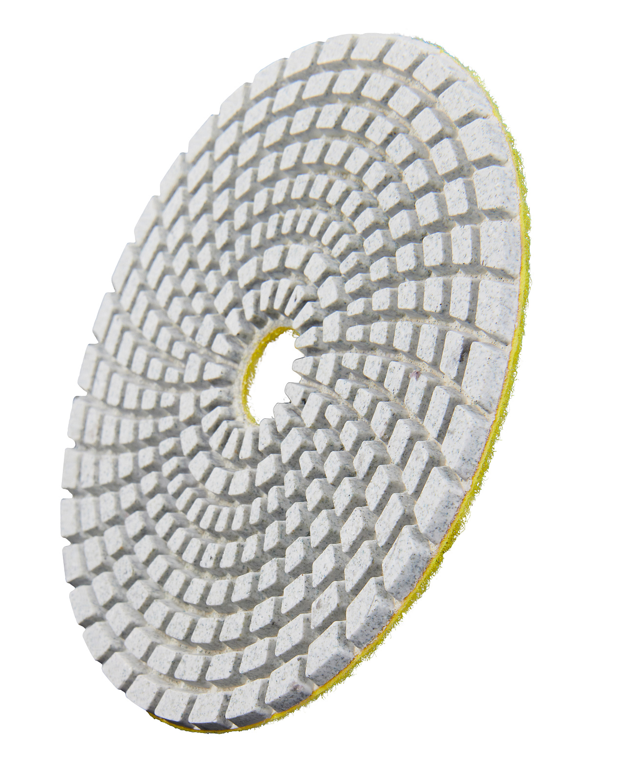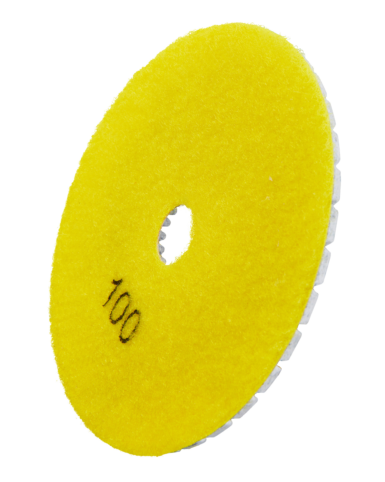 Алмазный гибкий круг диаметром 125 мм и зернистостью Р100 применяется для мокрого шлифования гранита, керамогранита и мрамора.
