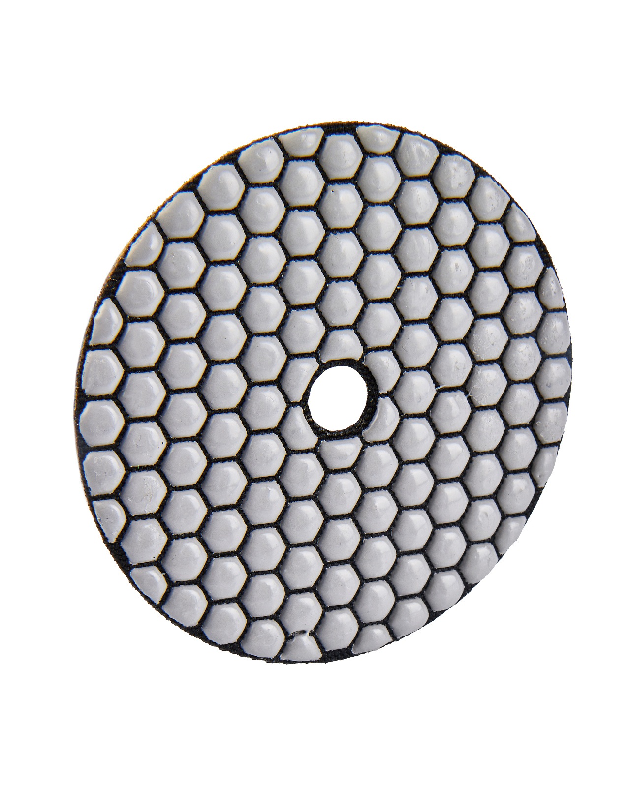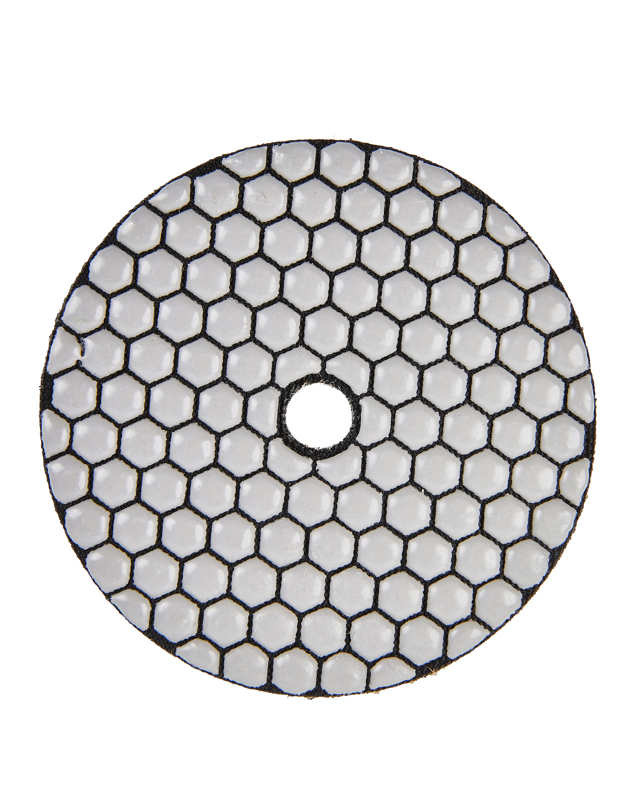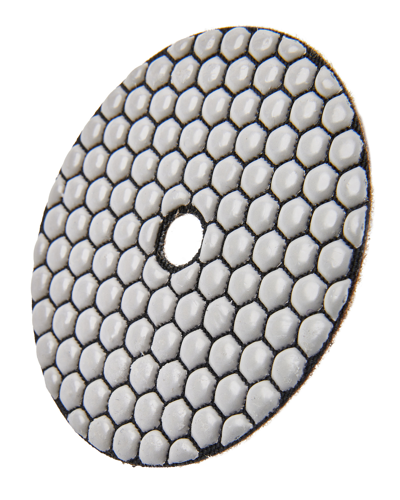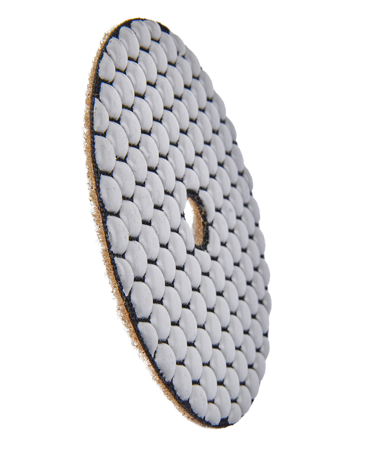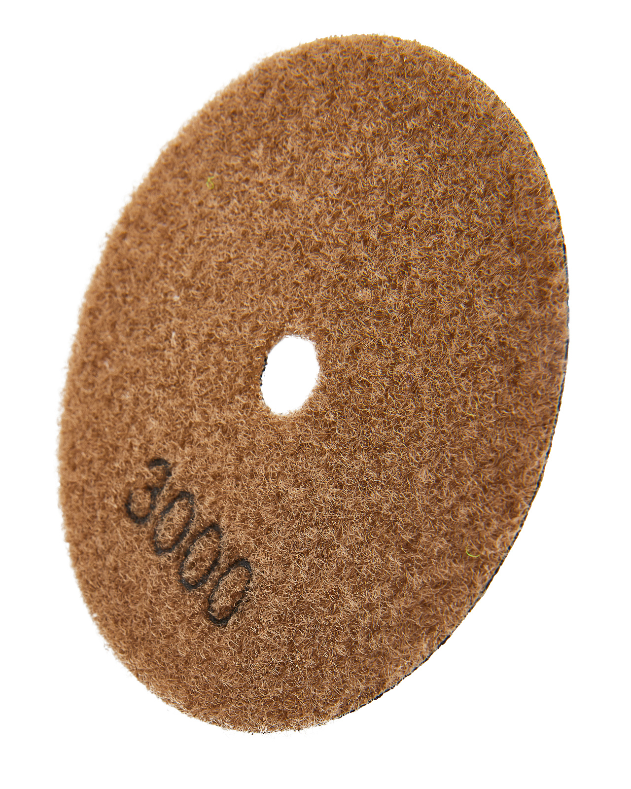 Алмазный гибкий круг диаметром 100 мм и зернистостью Р3000 применяется для сухого шлифования гранита, керамогранита и мрамора.