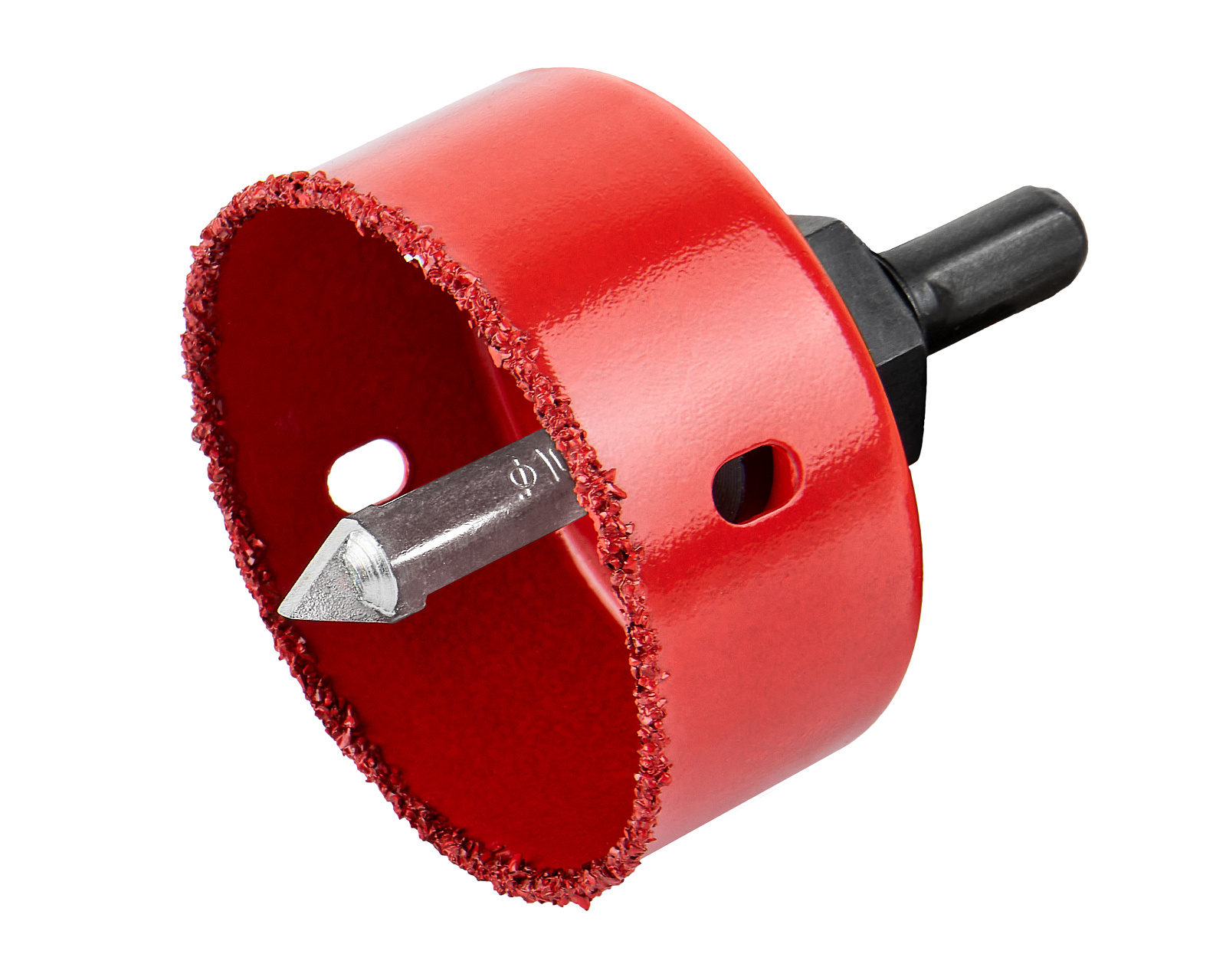 Кольцевая коронка с центрирующим сверлом, материал - сталь, карбид вольфрама.