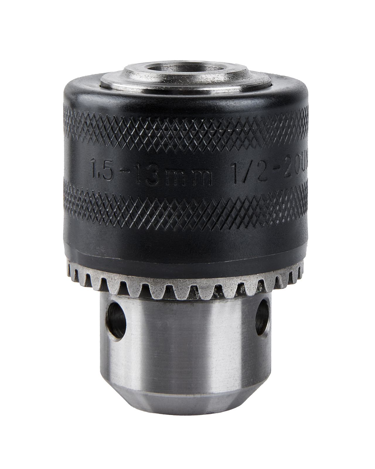 Патрон для дрели зубчато-венцовый с ключом для сверл 1,5-13 мм. Пластик, сталь.