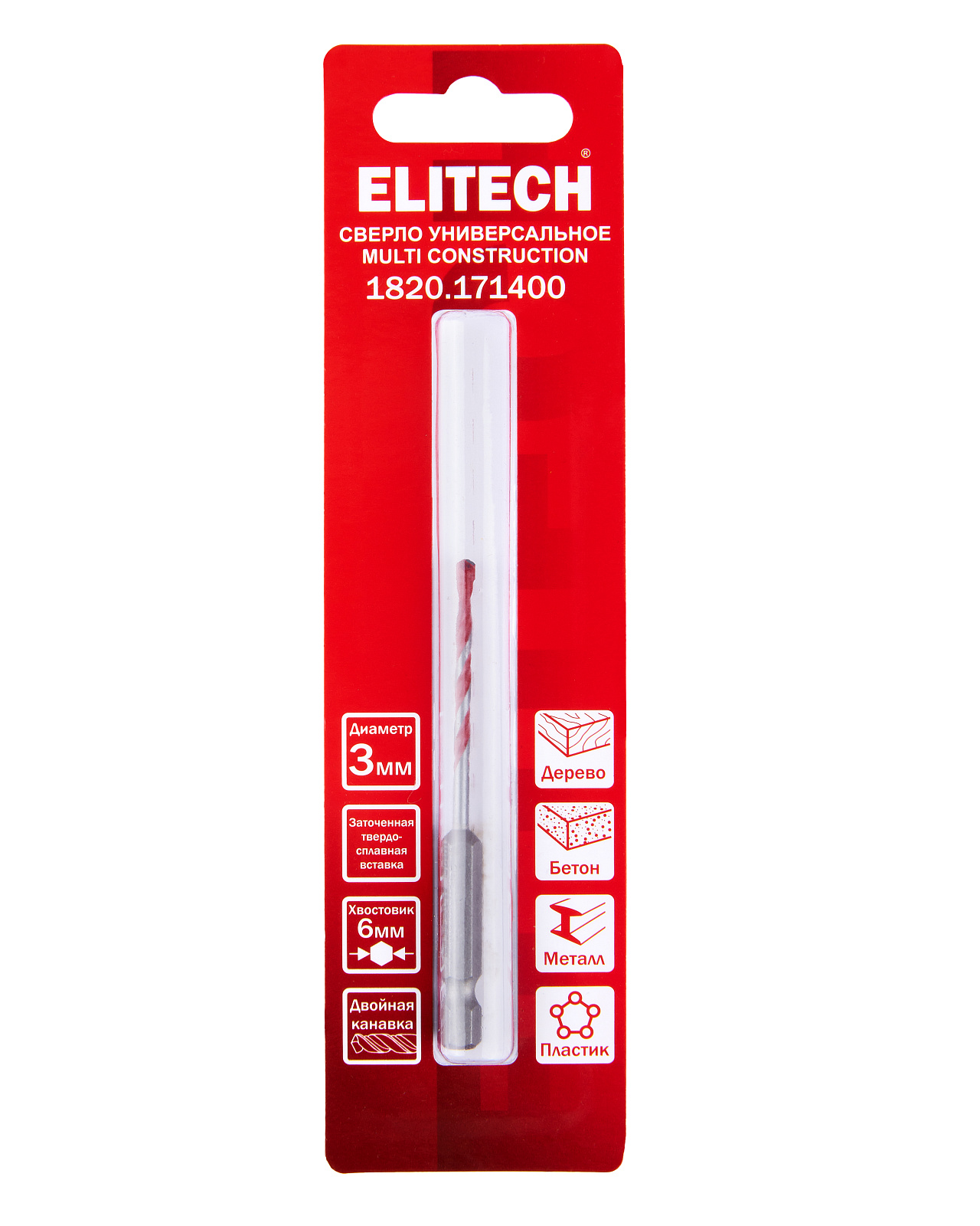 Универсальное сверло MULTI CONSTRUCTION предназначено для сверления различных материалов - стали, бетона, дерева, пластика, благодаря твердосплавной вставке с заточенными режущими кромками.