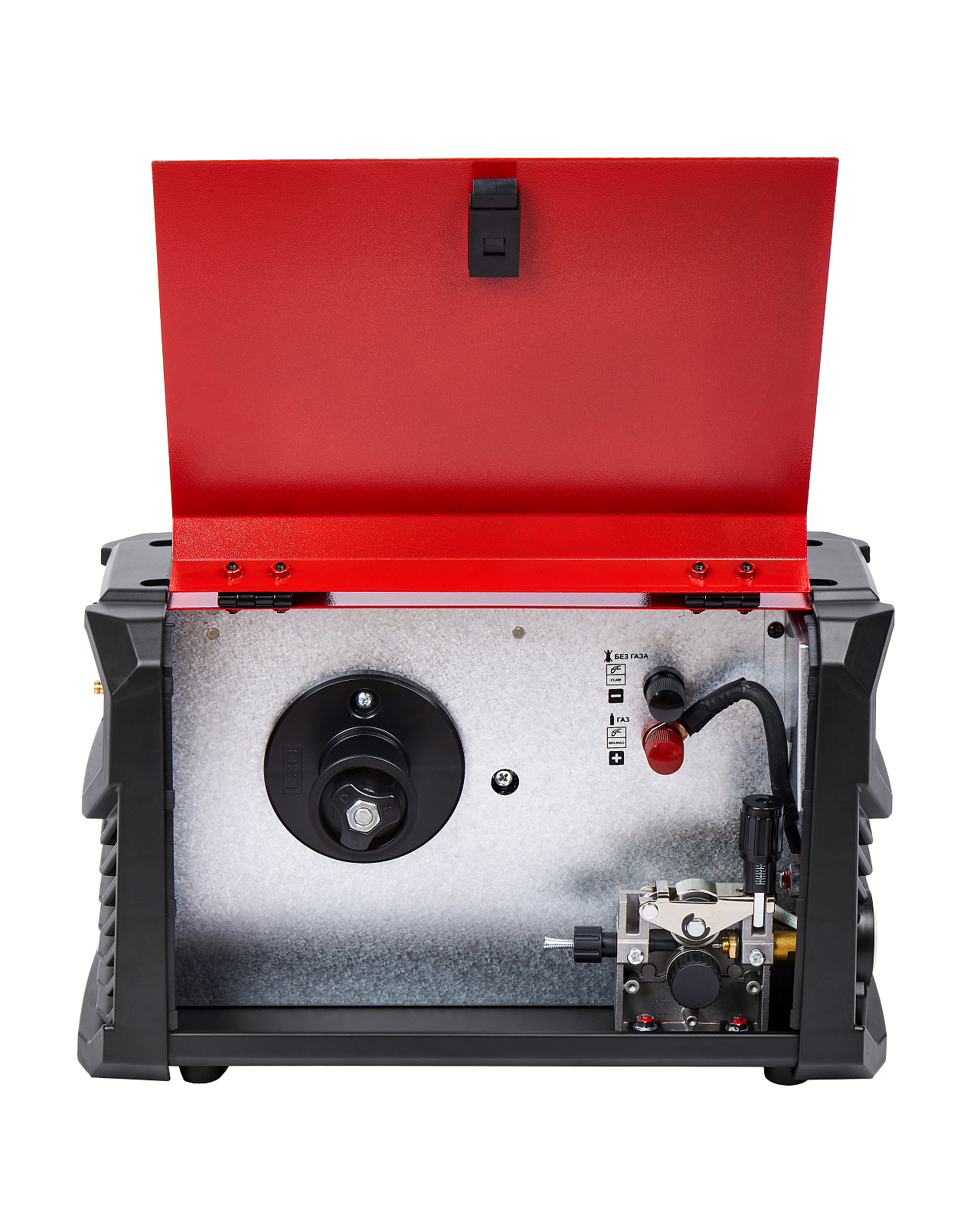 Инвертор оснащен цифровым LED дисплеем для контроля параметров сварки. Сварка с газом и без газа порошковой проволокой. Максимальная маса катушки 5кг.