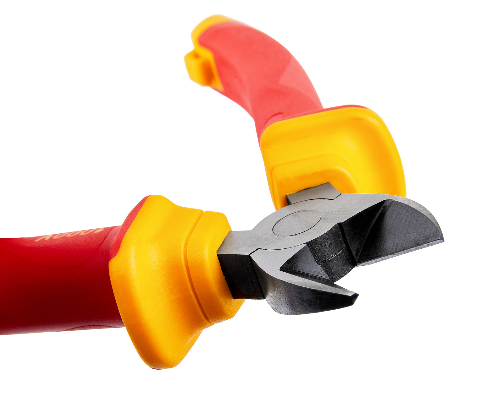 Бокорезы длиной 160 мм из хромованадиевой стали с диэлектрическими рукоятками рассчитаны на работу с неизолированными токоведущими деталями под напряжением до 1000 вольт.
