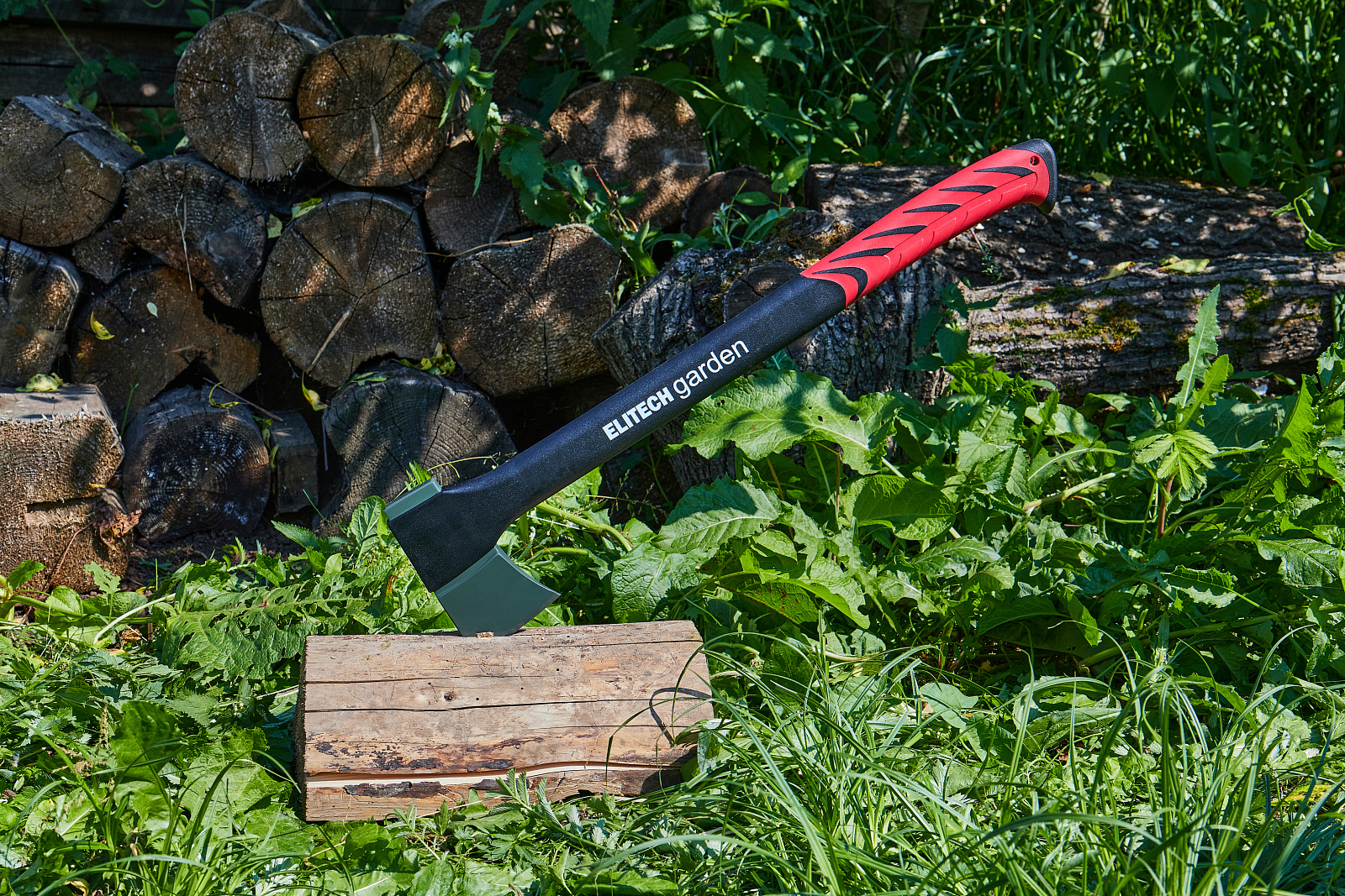 Универсальный топор длиной 610 мм и массой 1250 г используется для рубки древесных материалов.