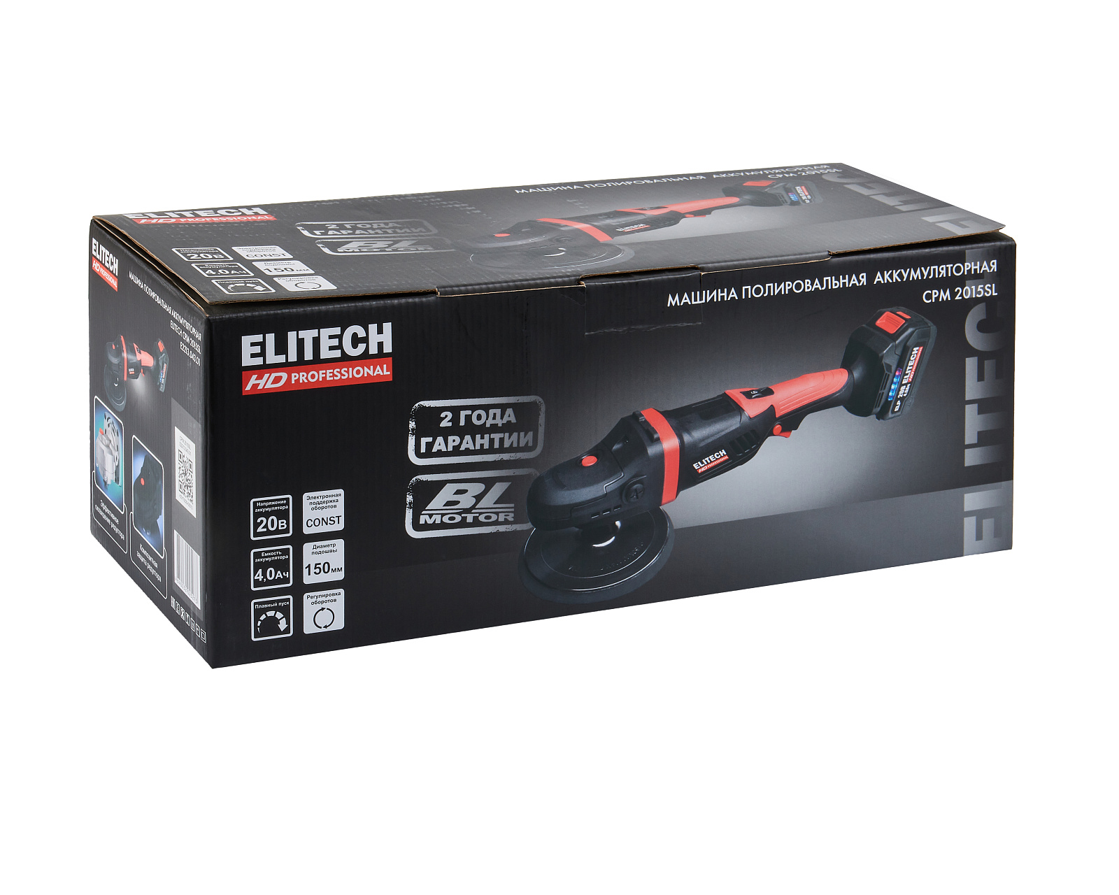 Машина полировальная аккумуляторная ELITECH HD CPM 2015SL 20 В, 180 мм, 1х4,0 Ач