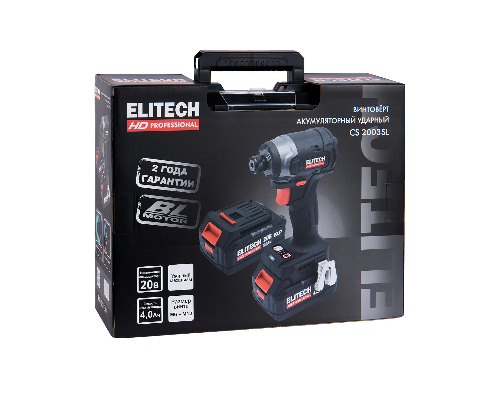 Ударный винтоверт ELITECH HD CS 2003SL с безщеточным электродвигателем, предназначен для работы с резьбовым крепежом (винты, болты и гайки). Он обеспечивает высокий крутящий момент в 260 Нм при минимальном усилии пользователя.