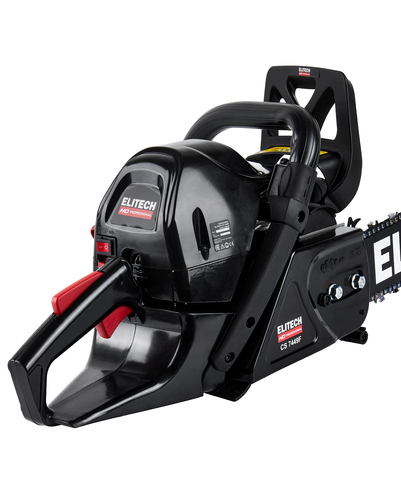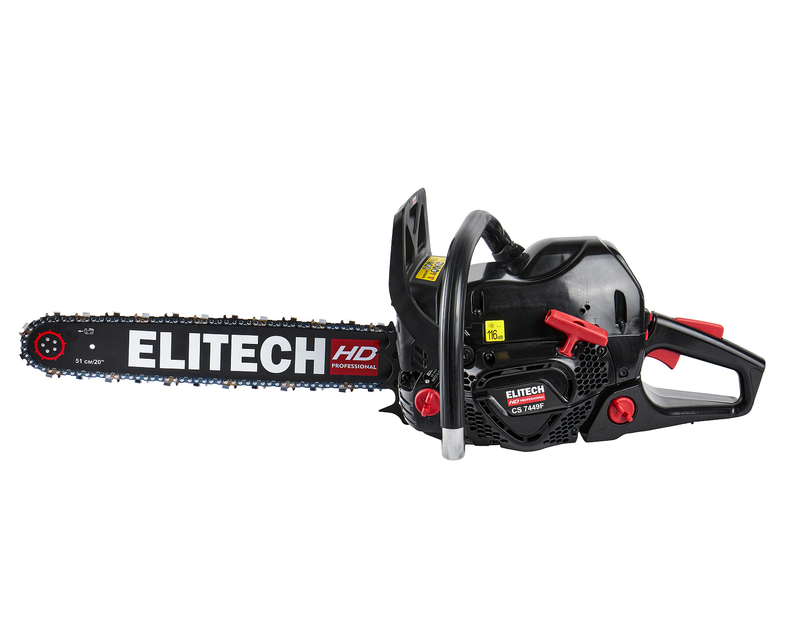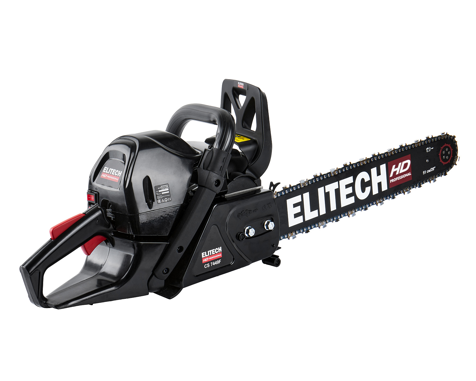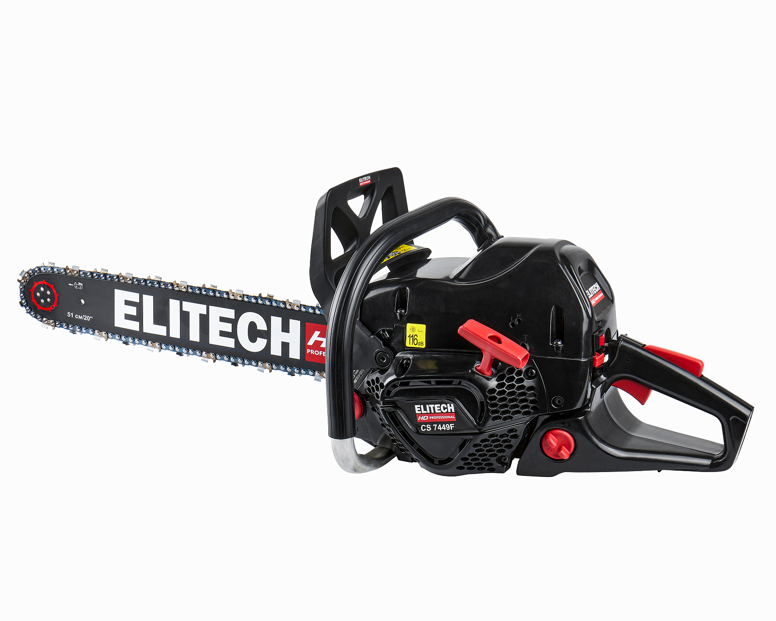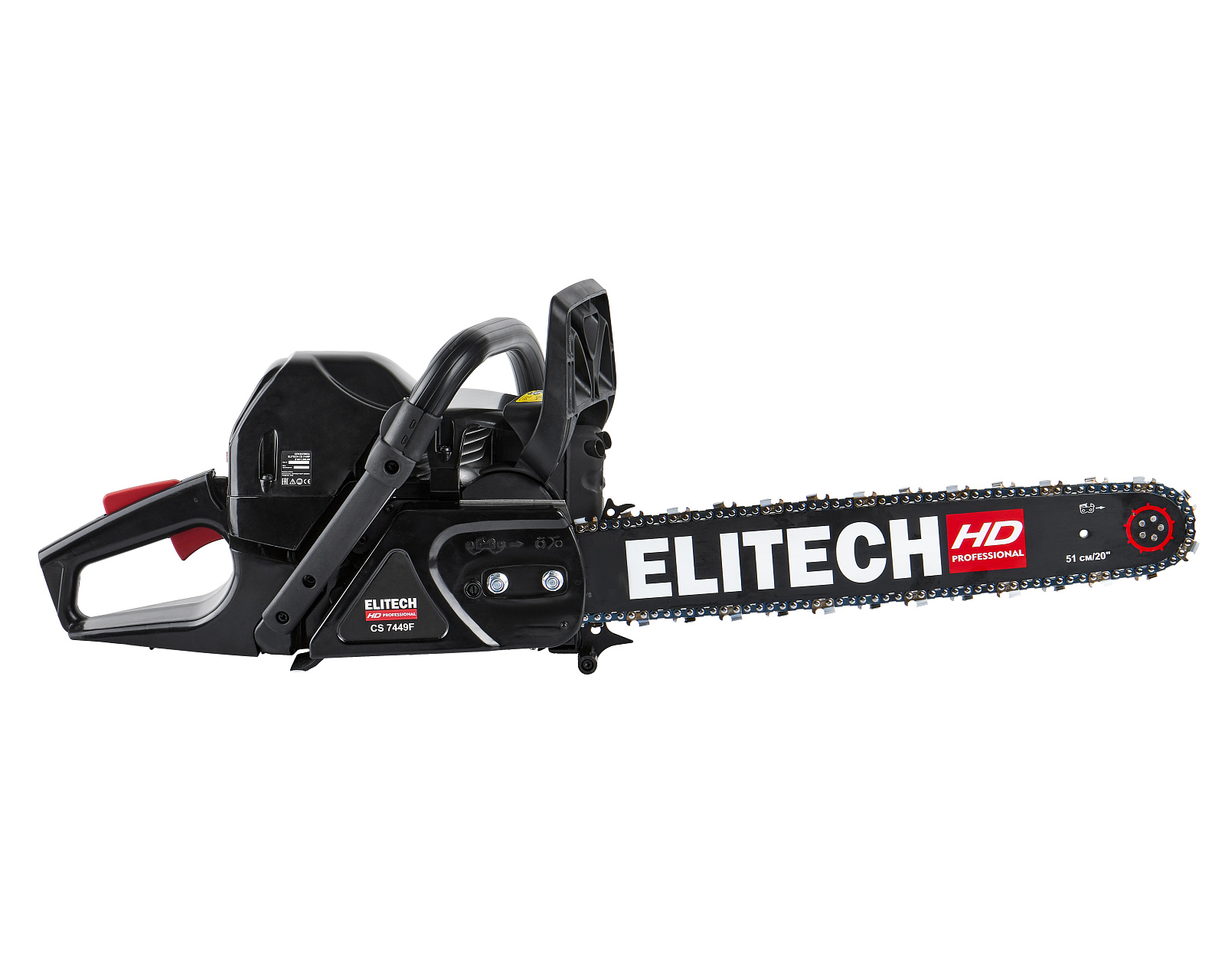 Цепная бензиновая пила ELITECH HD CS 7449F с двигателем мощностью 4,9 л.с. предназначена для пиления древесины вне помещений, на открытом воздухе. Выполняемые операции: валка деревьев, обрезка сучьев, раскряжевка ствола на сортименты, пиление дров. Цепная пила оснащена двухтактным двигателем внутреннего сгорания, работающим на смеси бензина и 2-тактного масла, приводящим в движение пильную цепь, двигающуюся по направляющей шине.Преимущества