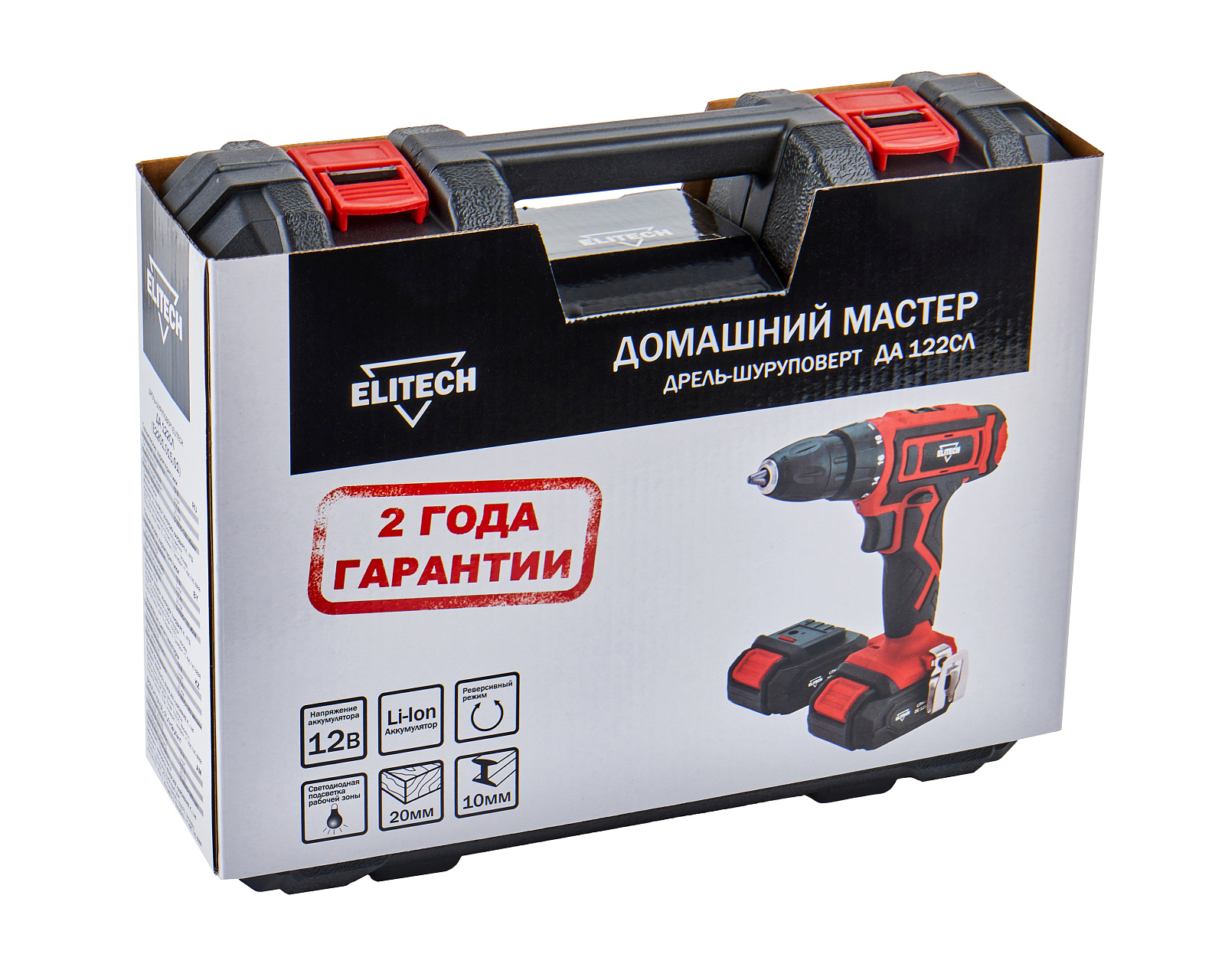 Аккумуляторная дрель-шуруповерт ELITECH ДА 122СЛ (E2201.015.01) предназначена для установки крепежа, сверления отверстий в черных и цветных металлах, дереве и производных материалов на его основе (фанера, ДСП, OSB, МДФ и подобные), а также различных видов пластика.