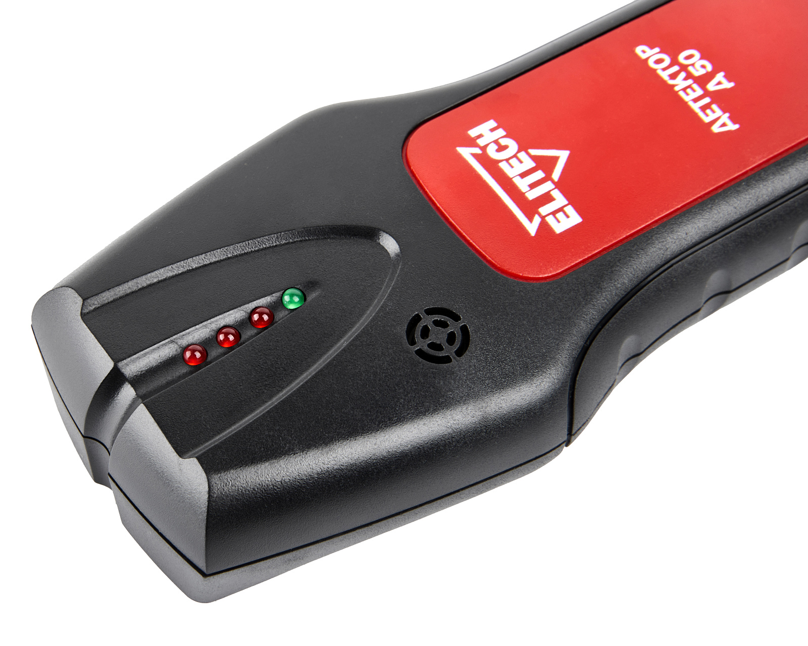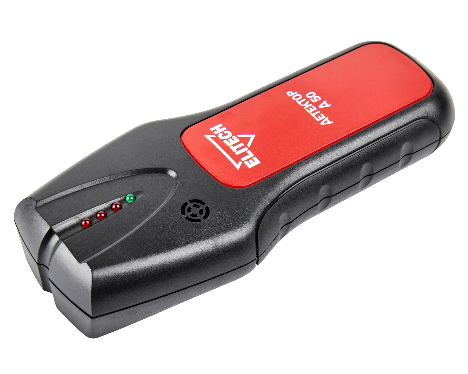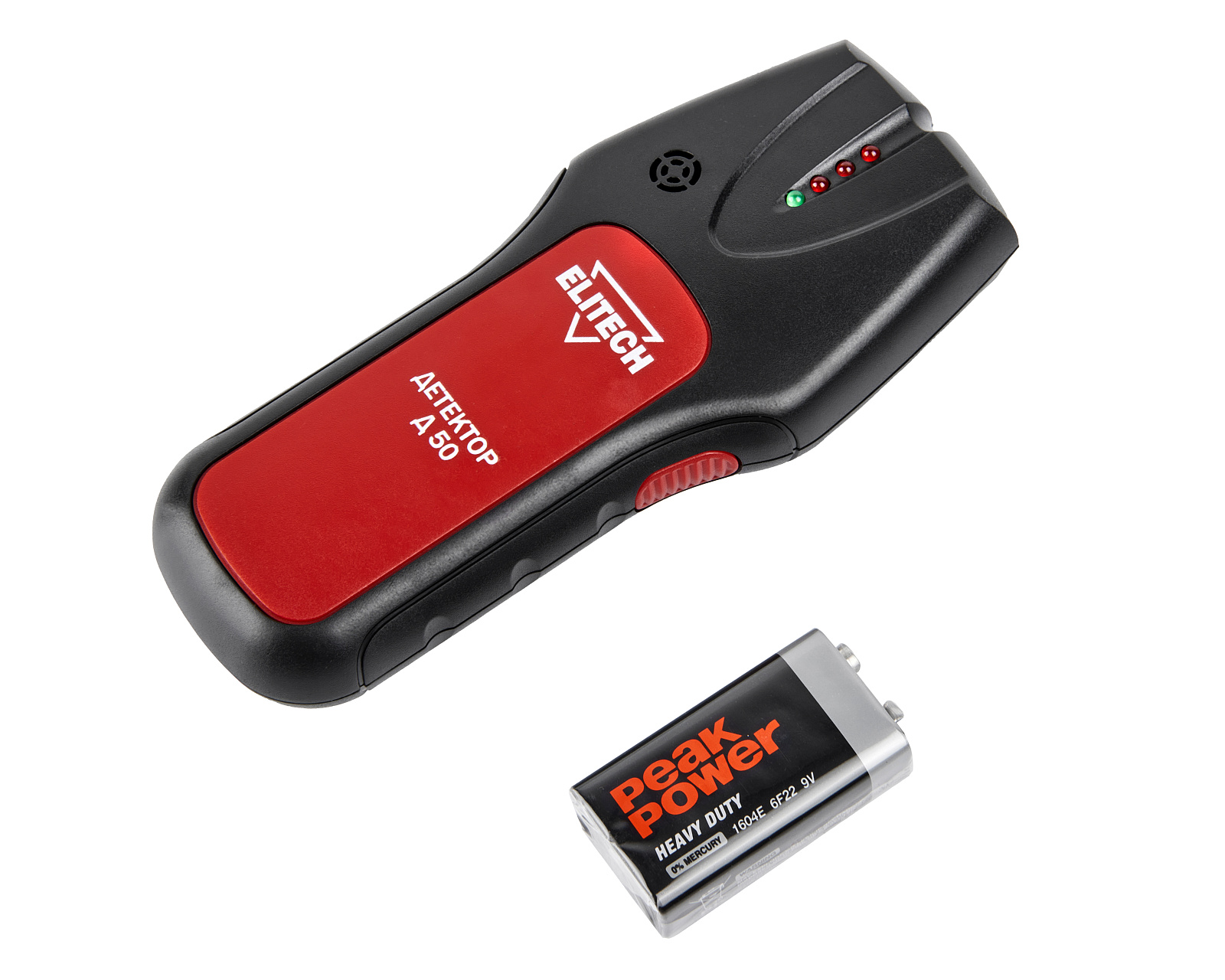 Детектор с питанием от элемента 6LR61 (9 В) предназначен для обнаружения металлов (сталей и цветных металлов), арматуры, различных проводников и проводов, а также деревянных конструкций в стенах и перекрытиях глубиной до 50 мм и точностью ±3 мм.