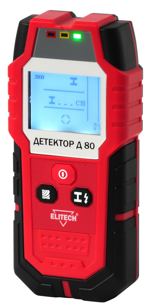 Детектор ELITECH Д80 предназначен для обнаружения в стенах, полах, потолках и других ограждающих конструкциях цветного и черного металлов, деревянных элементов каркаса и электропроводки под напряжением.