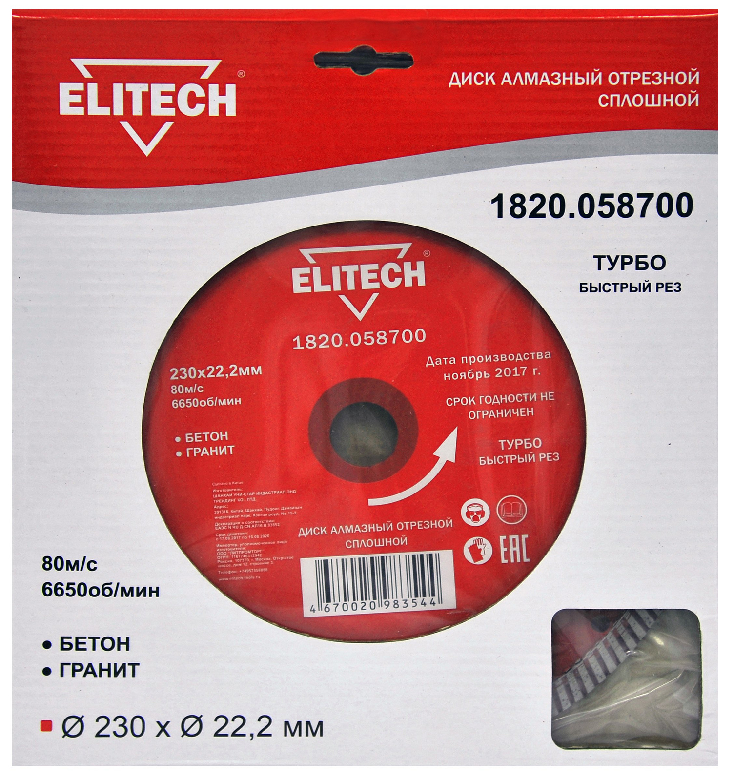 Алмазный отрезной сплошной диск предназначен для быстрой (турбо) резки бетона и гранита (камня) с помощью углошлифовальных машин.