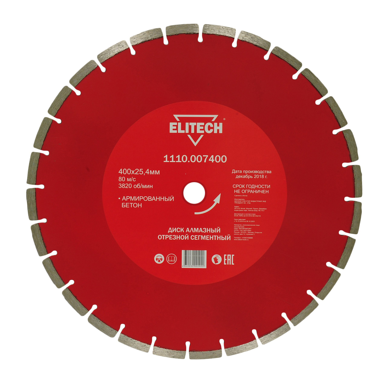 Диск алмазный 400х25,4 бетон армированный 1110.007400