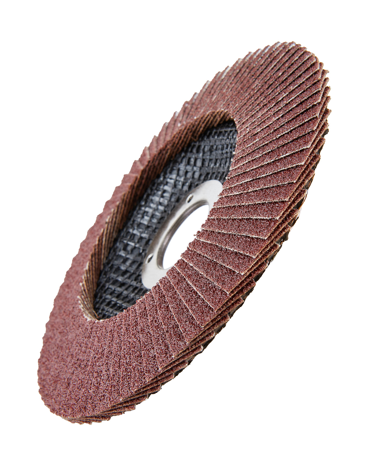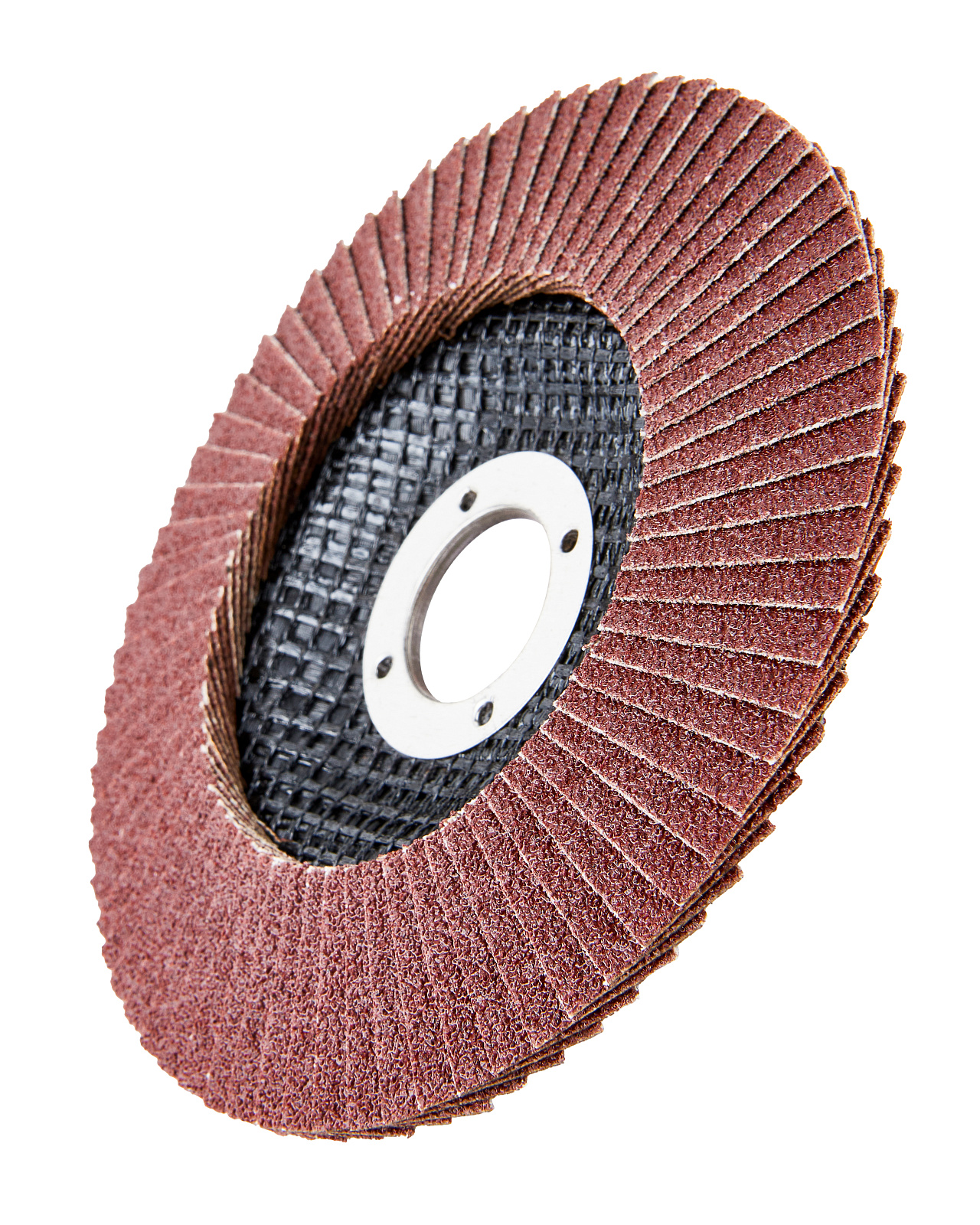 Лепестковый диск предназначен для шлифования поверхности изделий из металла, дерева и пластика, снятия с них краски, лаков, ржавчины, окалины и заусенцев с помощью углошлифовальной машины или дрели с крепежной насадкой. Подходит для обработки плоских, криволинейных и волнистых поверхностей. Изготовлен из абразивного материала – электрокорунда на тканевой основе.